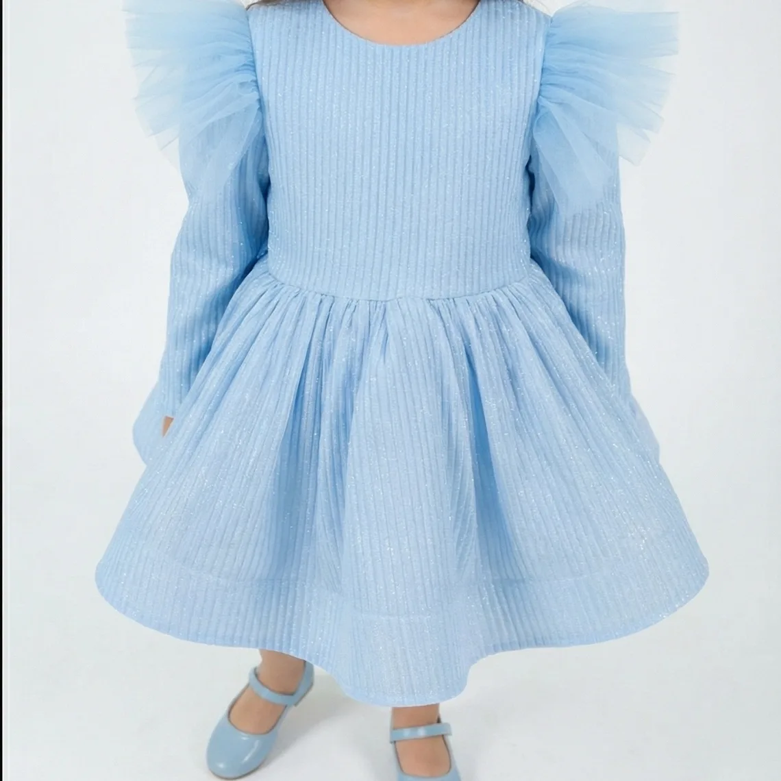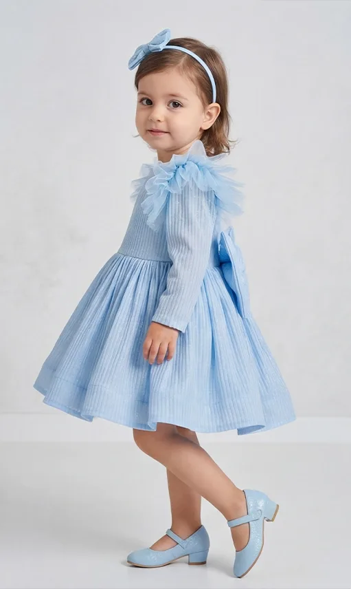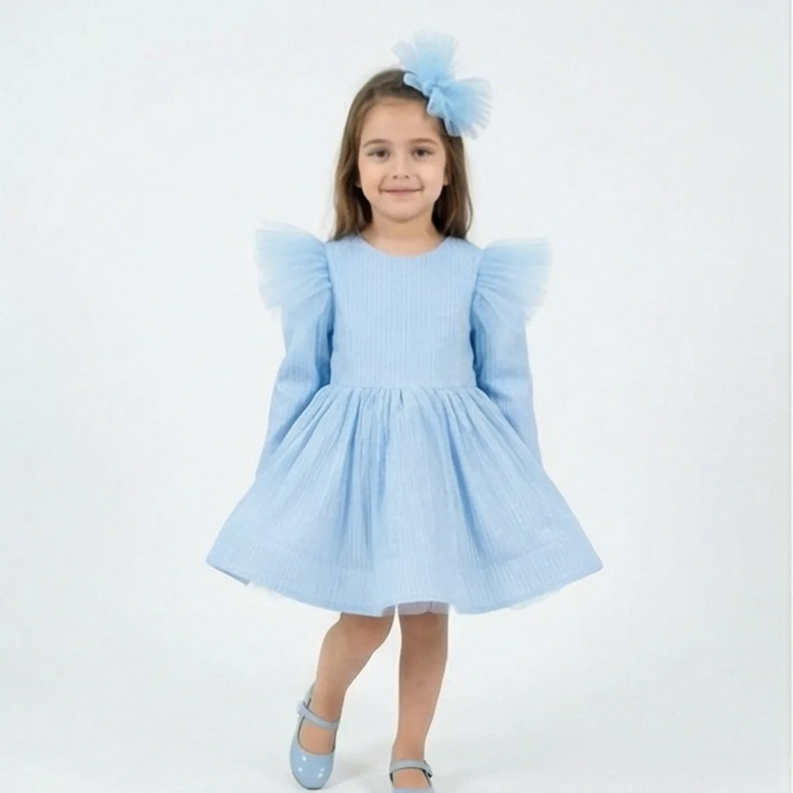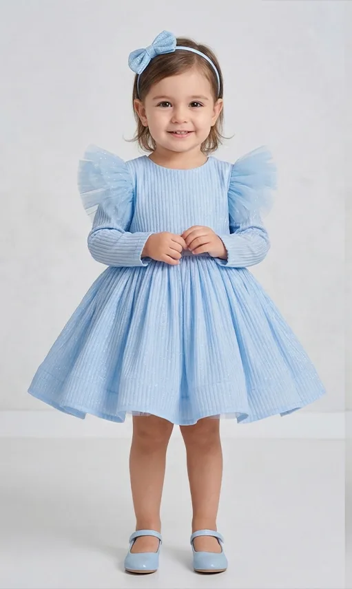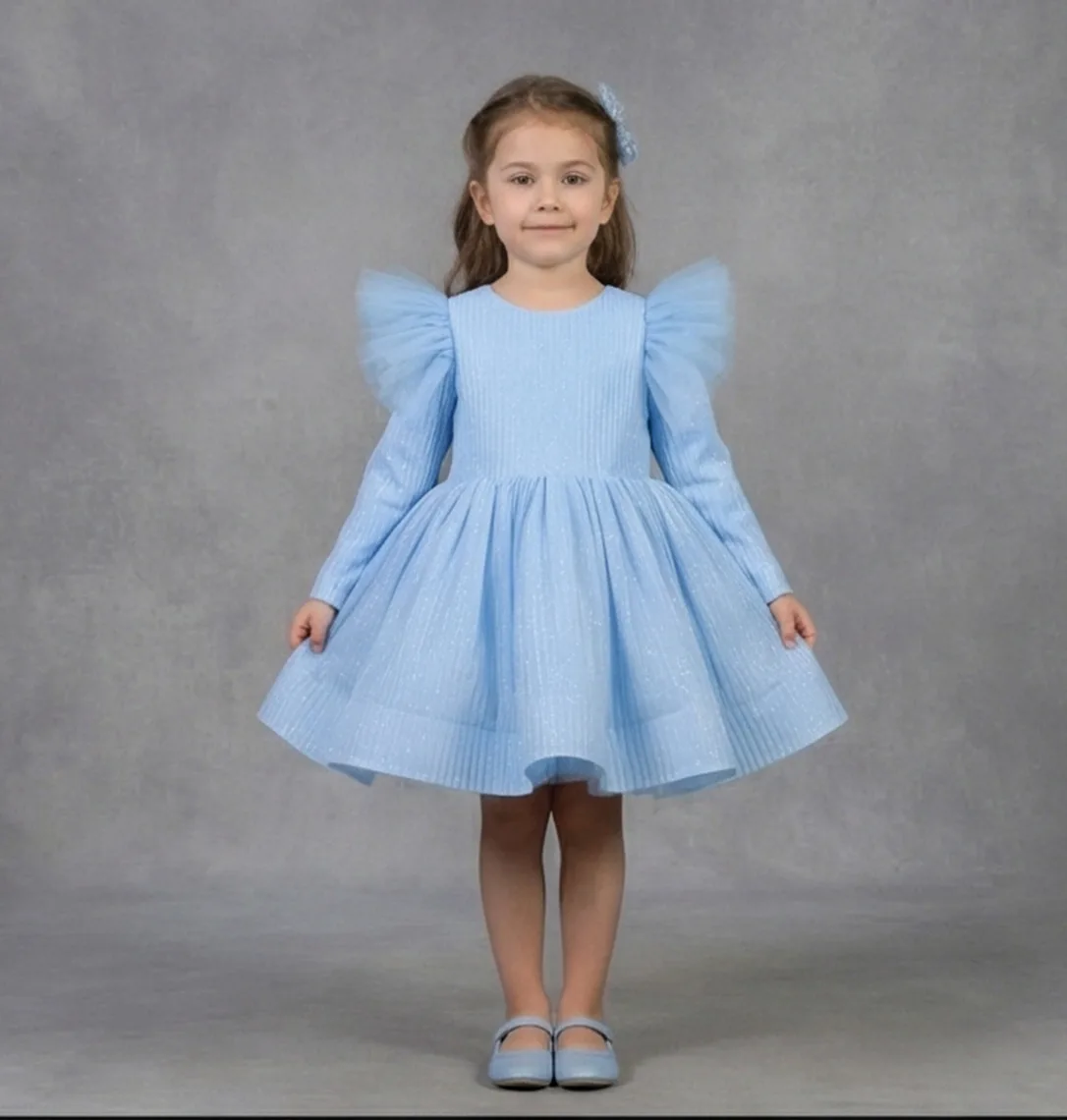 Kız Çocuk Bebe Mavisi Elbise Tamamen özel dikimdir. Eteğin kabarık olması için 6 kat tül kullanılmıştır.Üst kısmı Parıltılı kumaş olup. Elbisenin içi komple pamuk astarlıdır.Hiçbir şekilde cildi tahriş etmez.Tokası fiyata dahildir.Oldukça kabarık bir elbisedir. Yıkama ve kurutma işlemlerini tersten yapmanızı ve 30°c sıcaklıkta yıkamanızı öneririz.