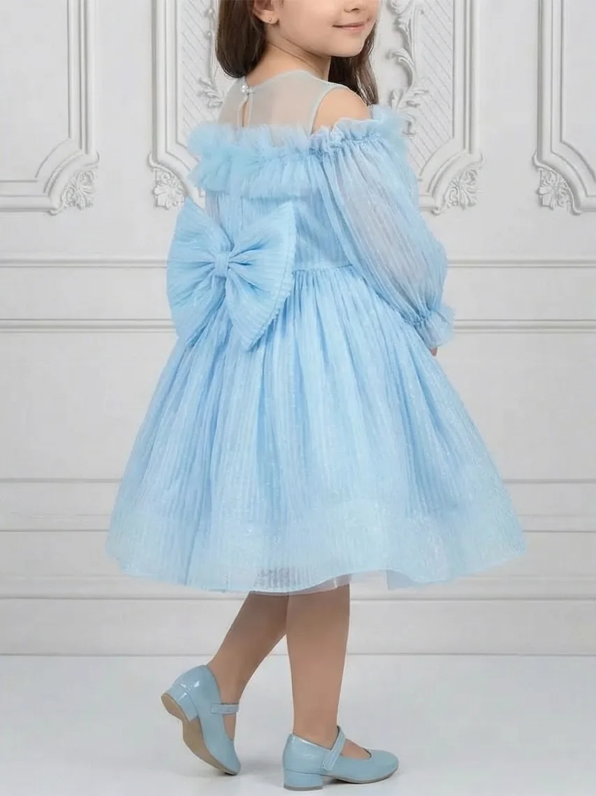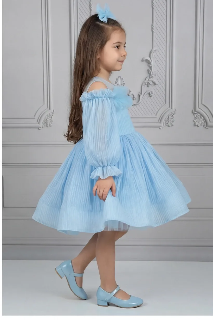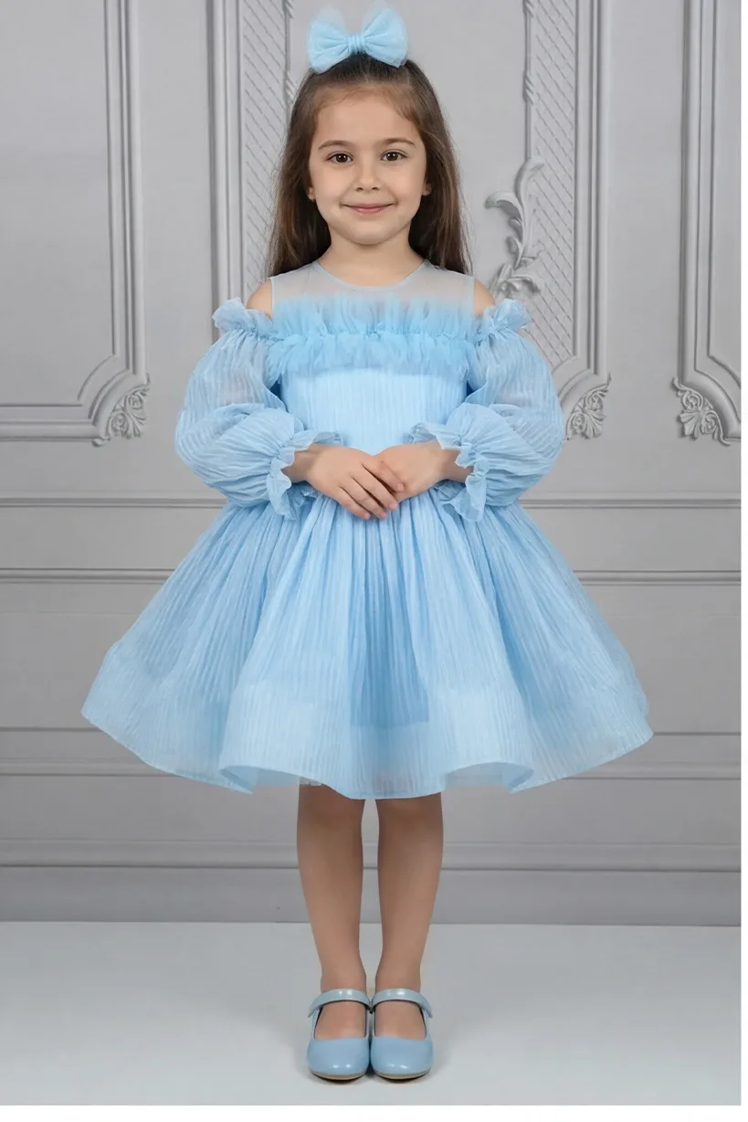 Kız Çocuk Bebe Mavisi Parıltılı Elbisemiz Tamamen özel dikimdir. Eteğin kabarık olması için 6 kat tül kullanılmıştır. Üst kısmı tül ile yapılmıştır. Elbise içi komple pamuk astarlıdır. Hiçbir şekilde cildi tahriş etmez.Oldukça kabarık bir elbisedir. Yıkama ve kurutma işlemlerini tersten yapmanızı ve 30°c sıcaklıkta yıkamanızı öneririz.