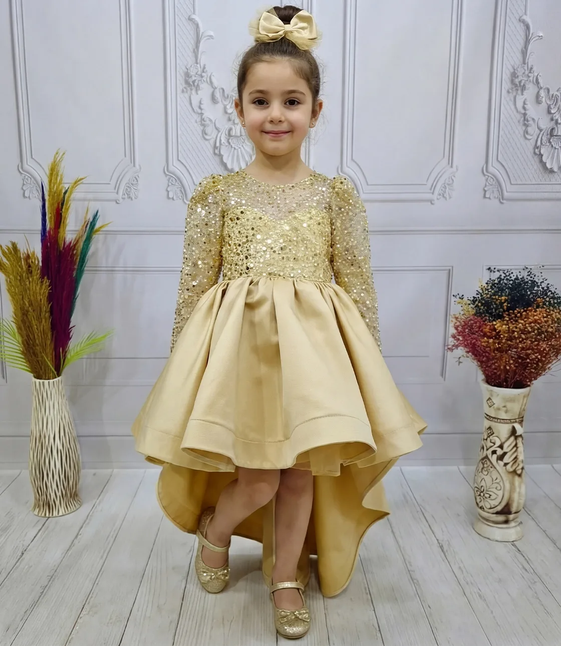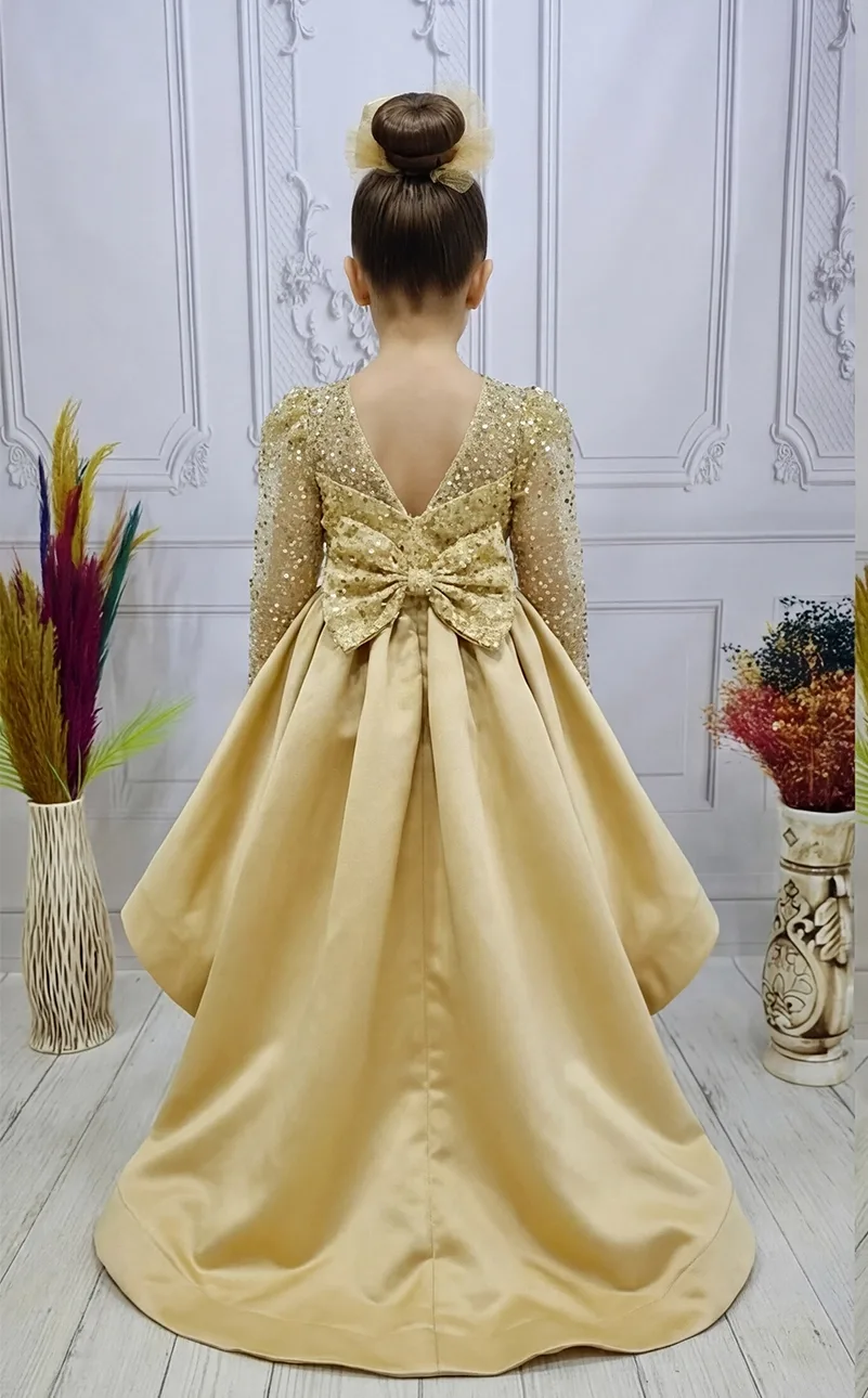 Kız Çocuk Boncuklu Payetli Kabarık Elbisel Tüy Detaylı Kabarık Elbise Eteklerinde Gren Vardır ve Çok Kabarık Elbise Modelidir.