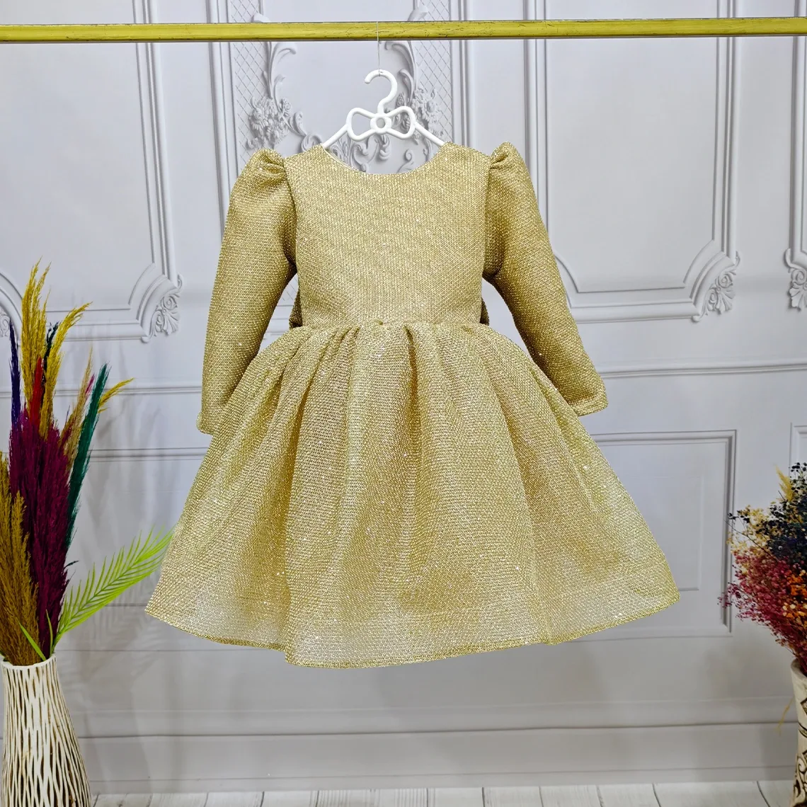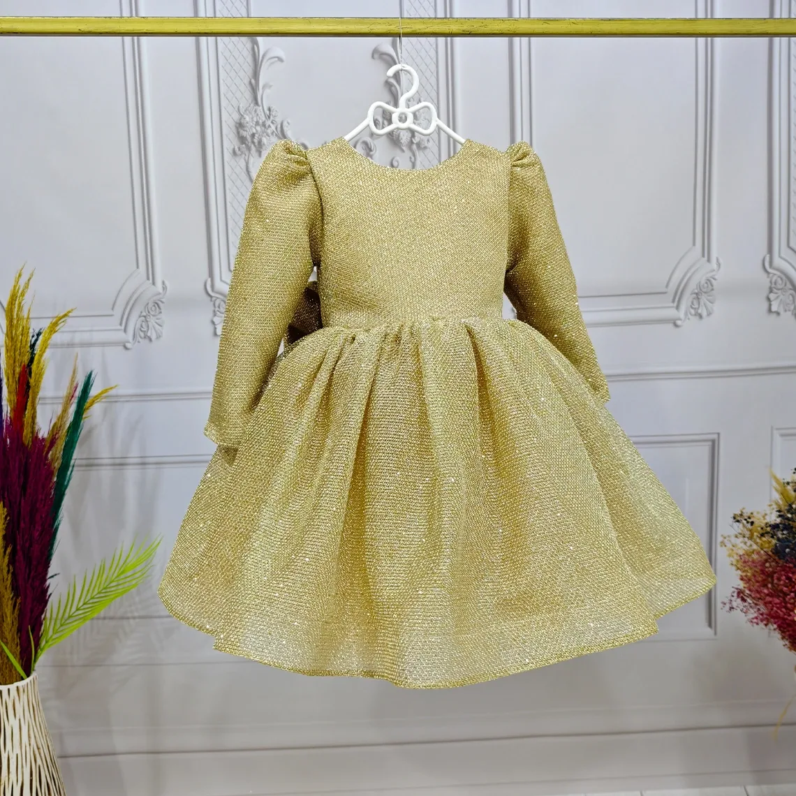 Kız Çocuk Bebe Mavisi Boncuklu Payetli Grenli Kalp Detaylı Kabarık Elbise
