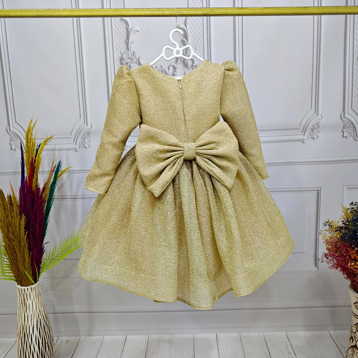 Kız Çocuk Kırmızı Arkası Tüylü Kısa Balon Kol Elbise Abiye