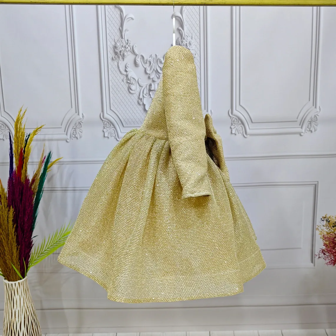 Bej Parıltılı Zincir Kendliğinden simli Kabarık Elbise Abiye Gelinlik