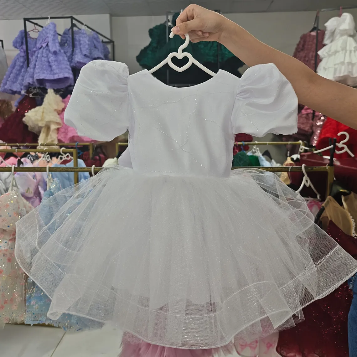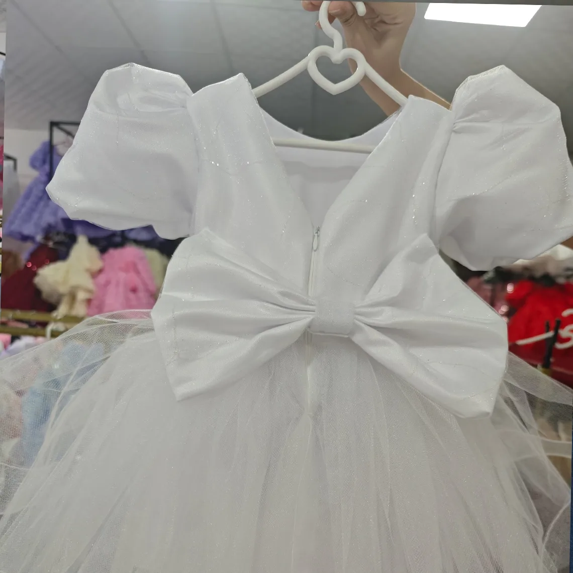 Kız Çocuk Beyaz Taşlı Boncuklu Payetli Sıfır Kol Elbise  Kabarık Elbise Eteklerinde Gren Vardır ve Çok Kabarık Elbise Modelidir.