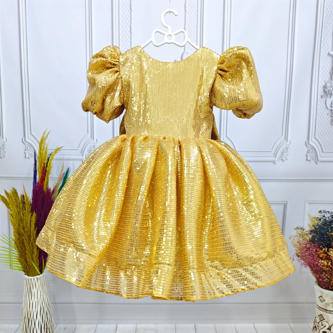 Kız Çocuk Boncuklu Payetli Kabarık Elbisel Tüy Detaylı Kabarık Elbise Eteklerinde Gren Vardır ve Çok Kabarık Elbise Modelidir.