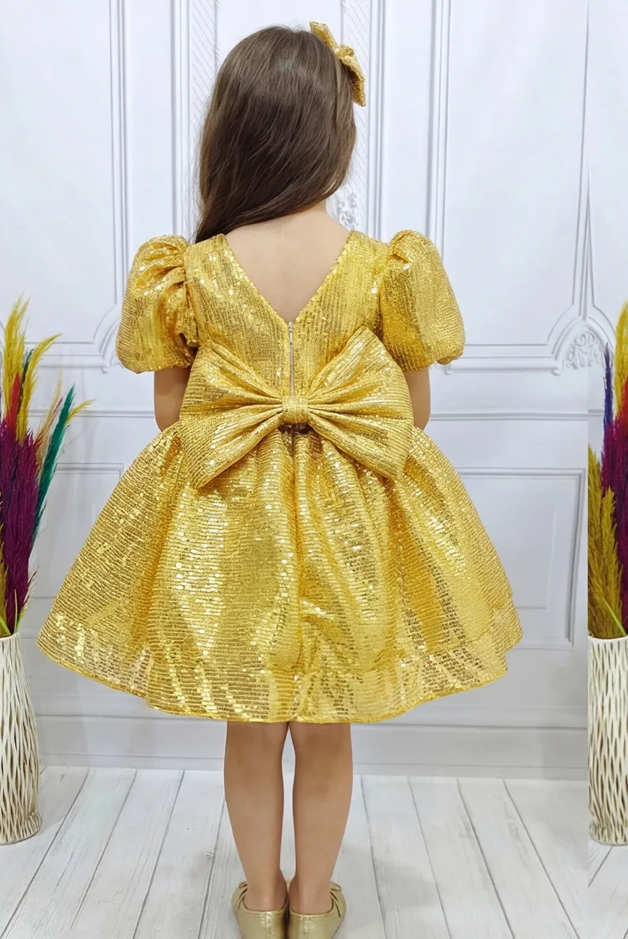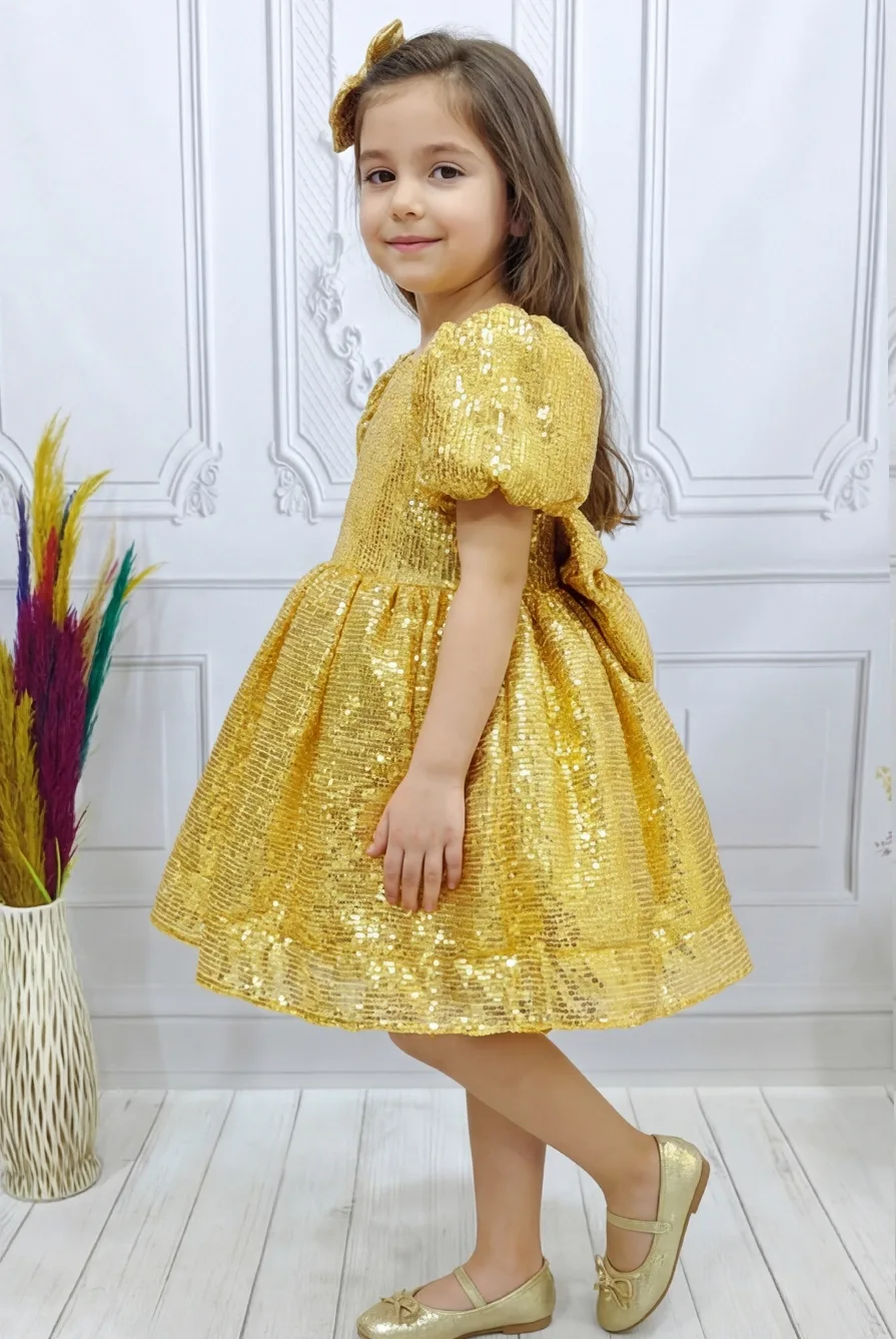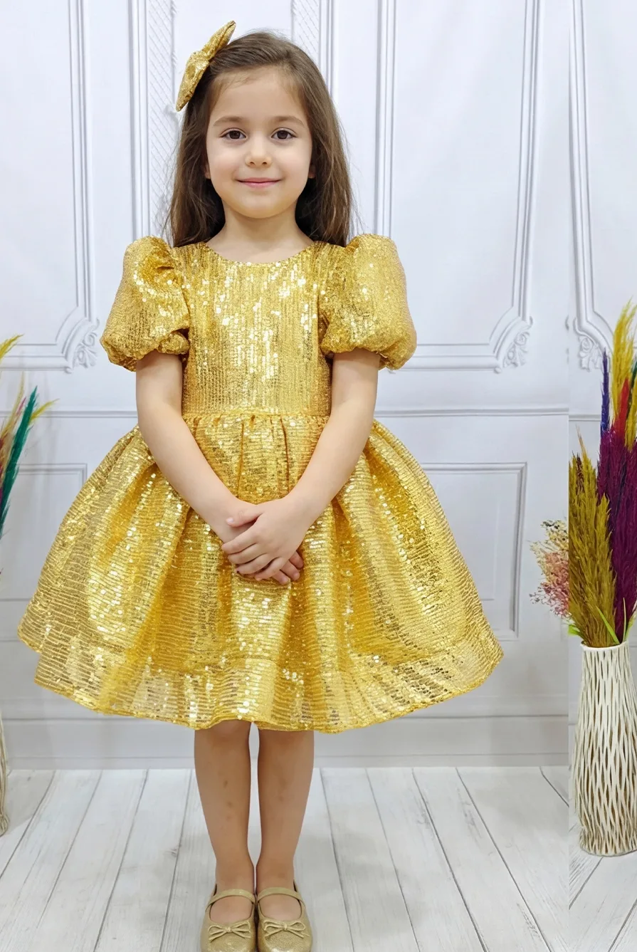 Gold Parıltılı Payetli Elbise Abiye Gelinlik