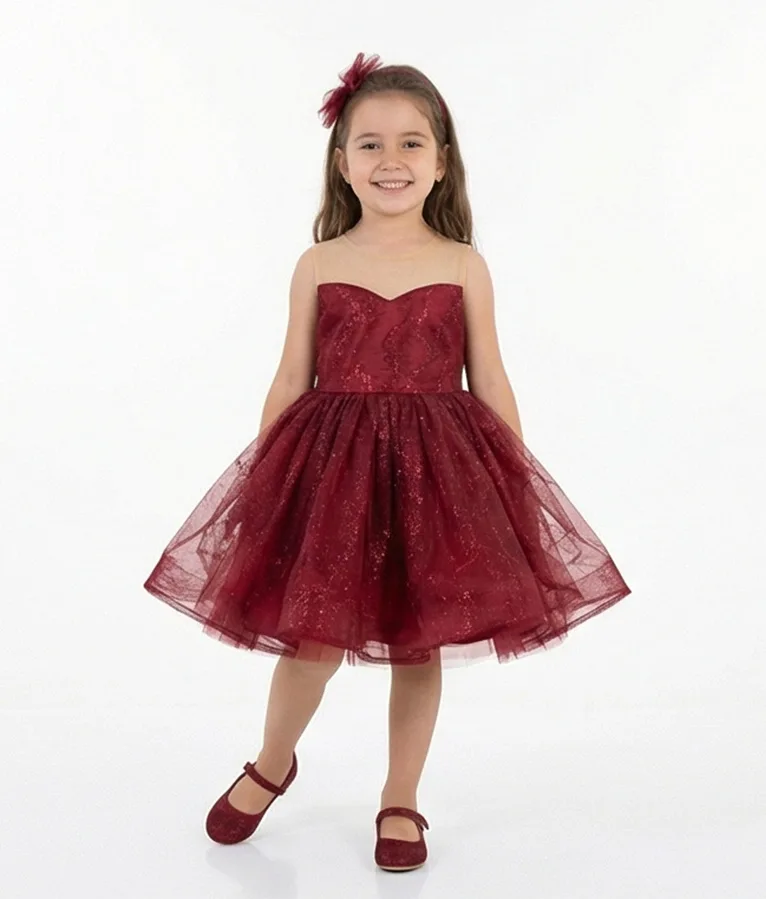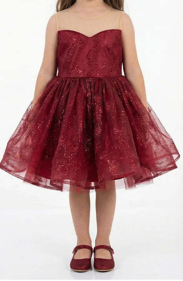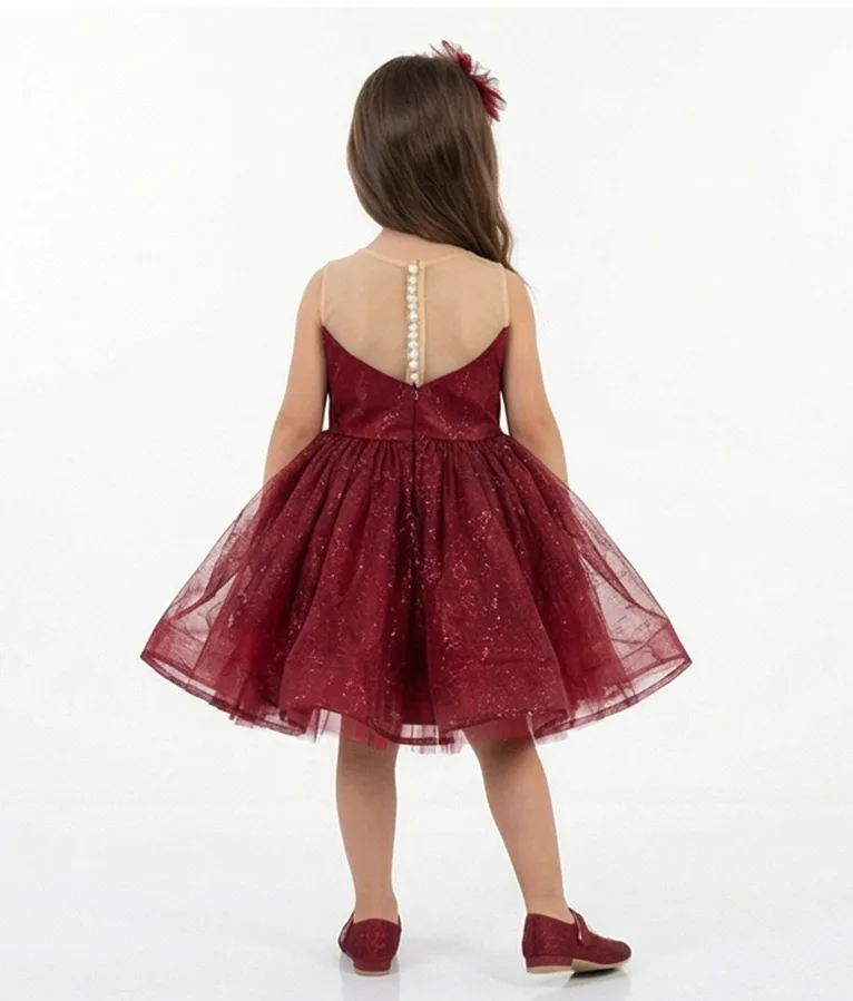 Kız Çocuk Boncuklu Payetli Kabarık Elbisel Tüy Detaylı Kabarık Elbise Eteklerinde Gren Vardır ve Çok Kabarık Elbise Modelidir.