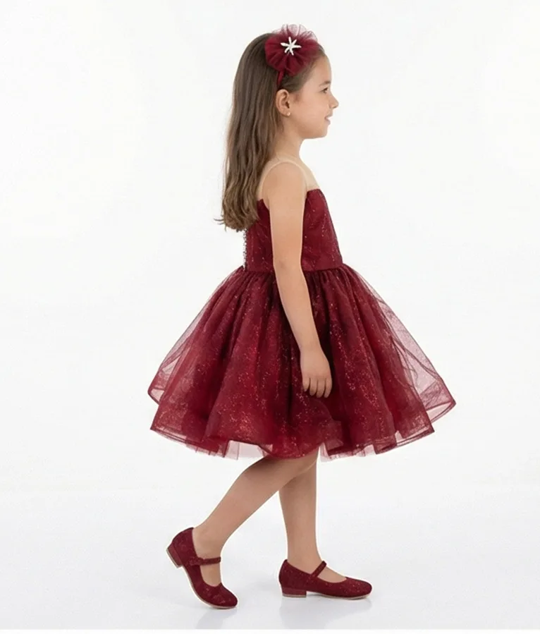 Bordo Parıltılı Simli Elbise Abiye Gelinlik