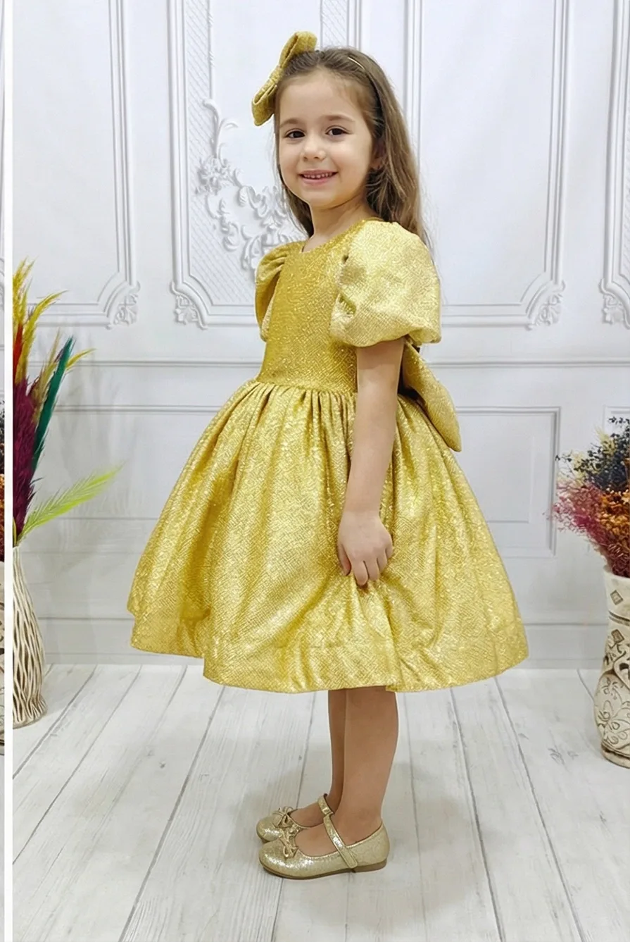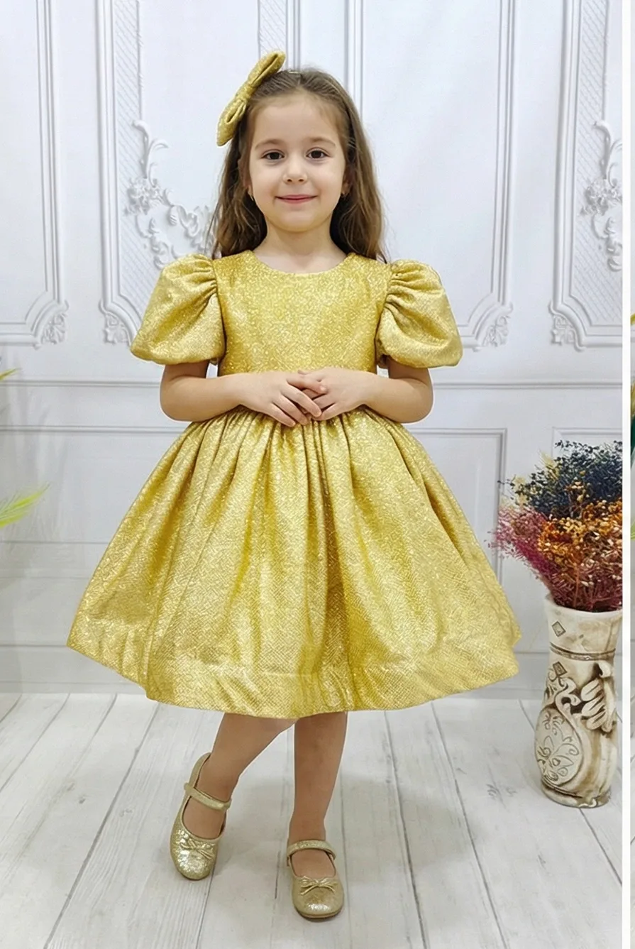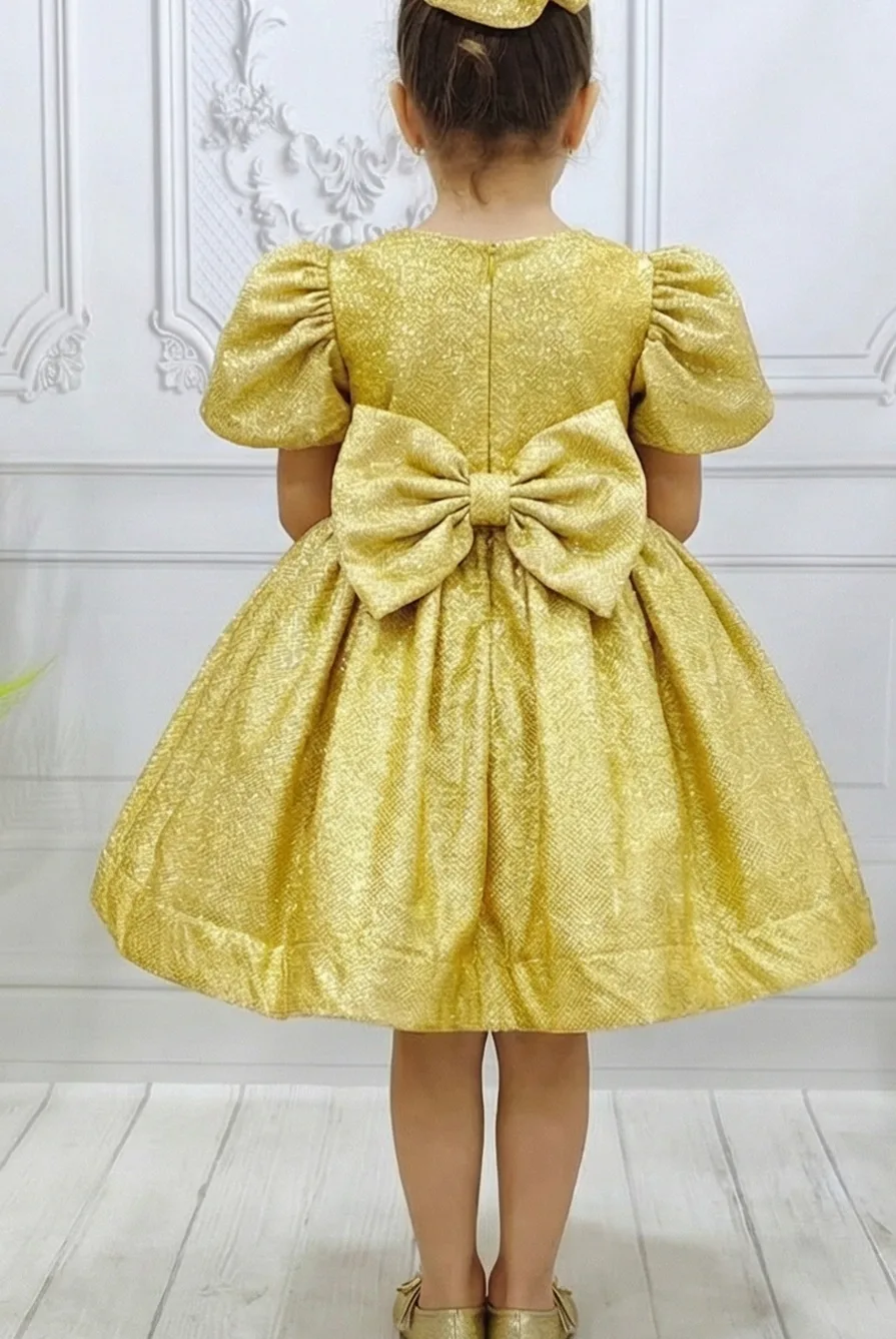 Gold Simli Parıltılı Flok Elbise Abiye Gelinlik