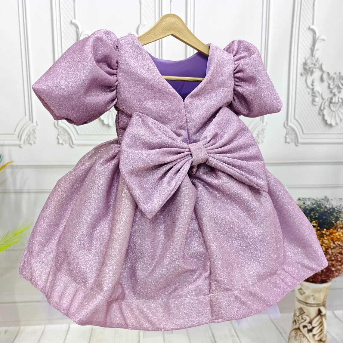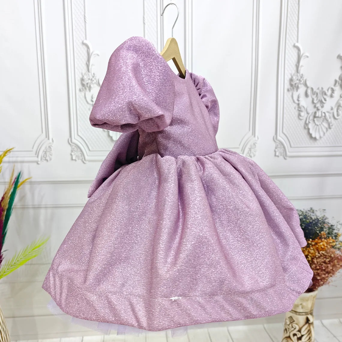 Gül kurusu lila Parıltılı Kısa Kol Elbise Abiye Gelinlik