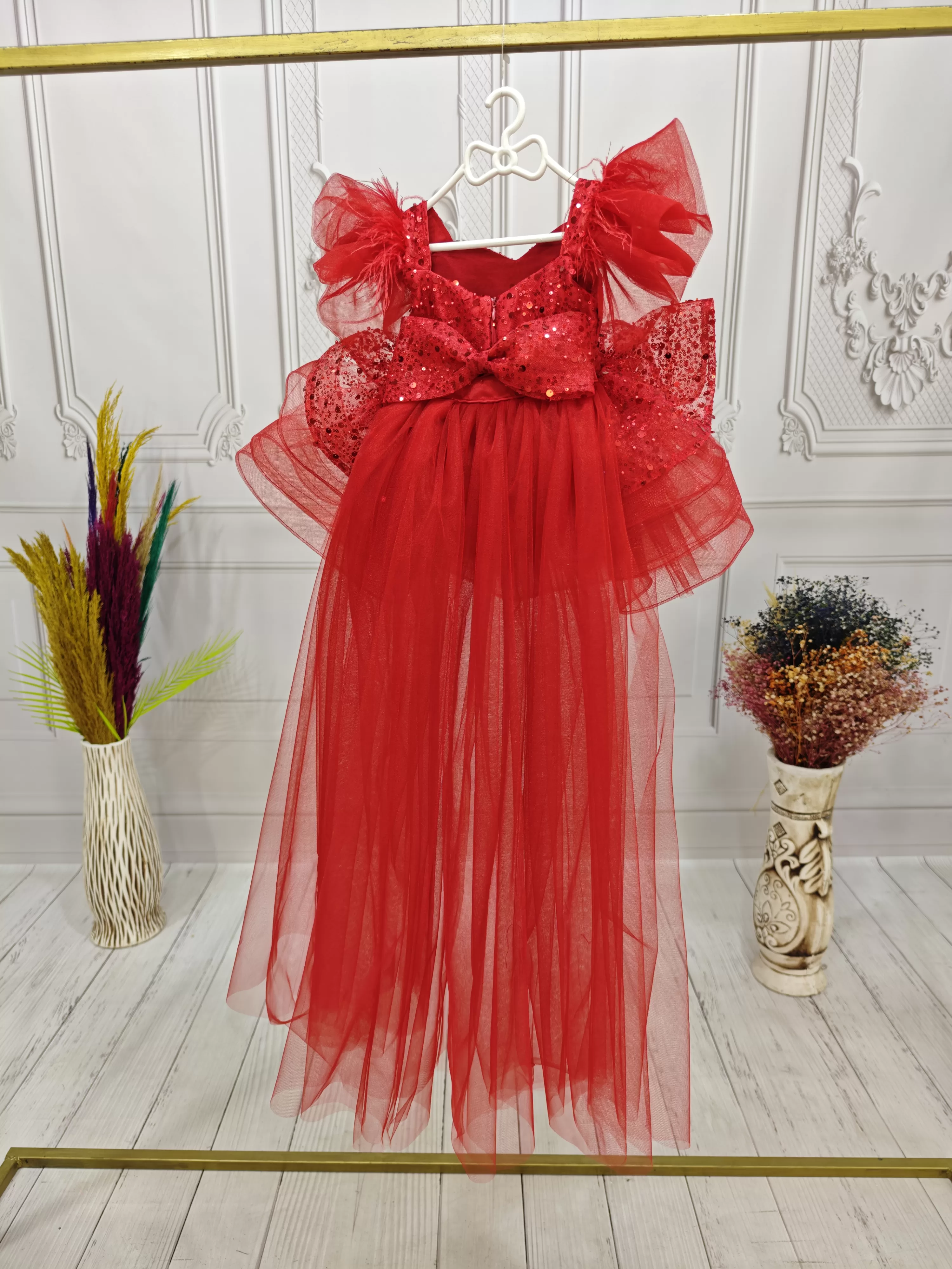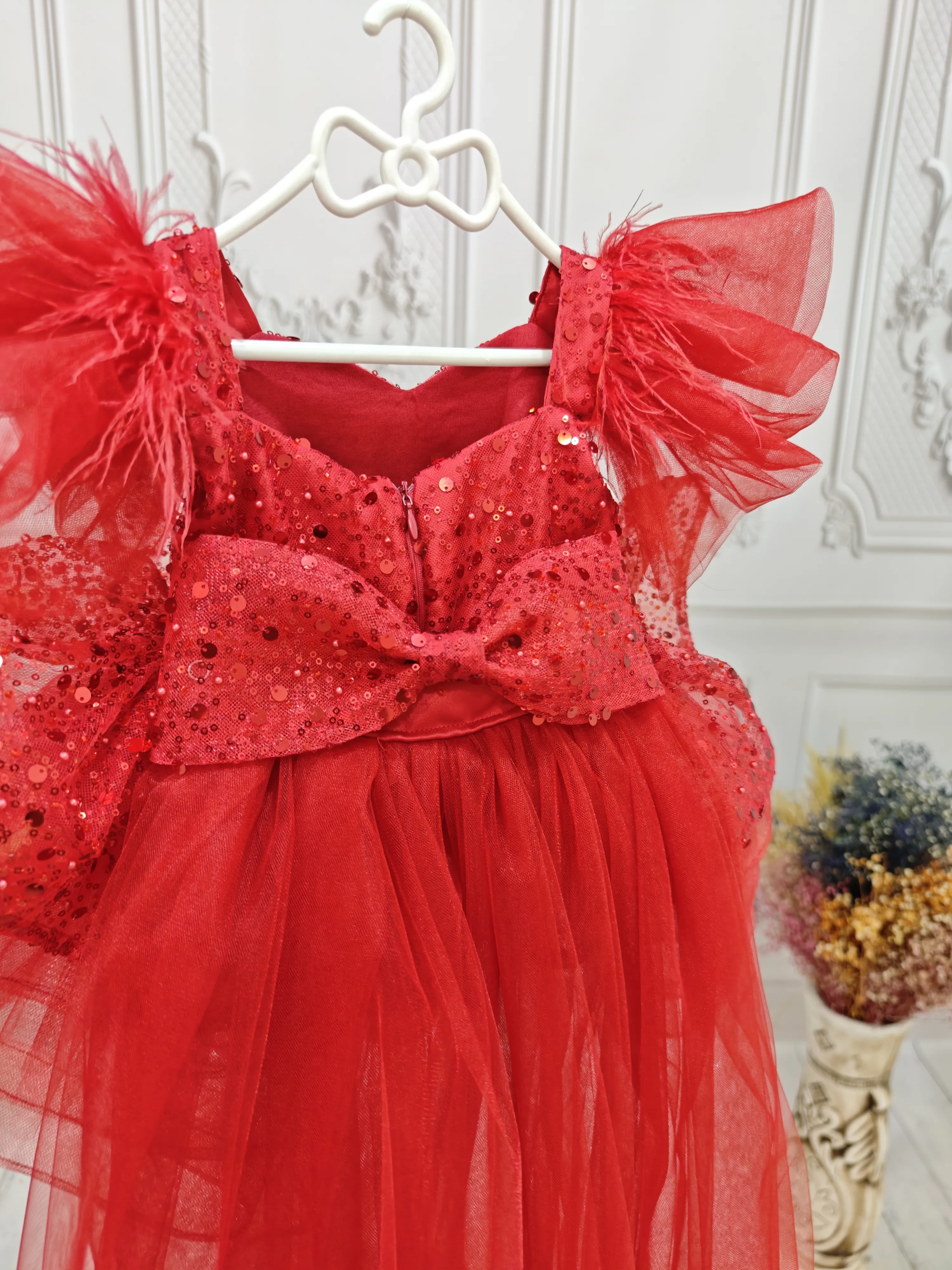 Kız Çocuk Beyaz Kuyruklu Şeffaf Gül Desenli Kısa Balon Kol Elbise Abiye Kuyruludur Ve Oldukça Zariftir İstediğin Beden Üretimi Yapılmaktadır. Elbısenın içi komple pamuk astarlıdır.Hicbir sekilde cildi tahriş etmez..Oldukça kabarık bir elbisedir. Yıkama ve kurutma işlemlerini tersten yapmanızı ve 30°c sıcaklıkta yıkamanızı öneririz. ( TOKASI DAHİL DEĞİLDİR )