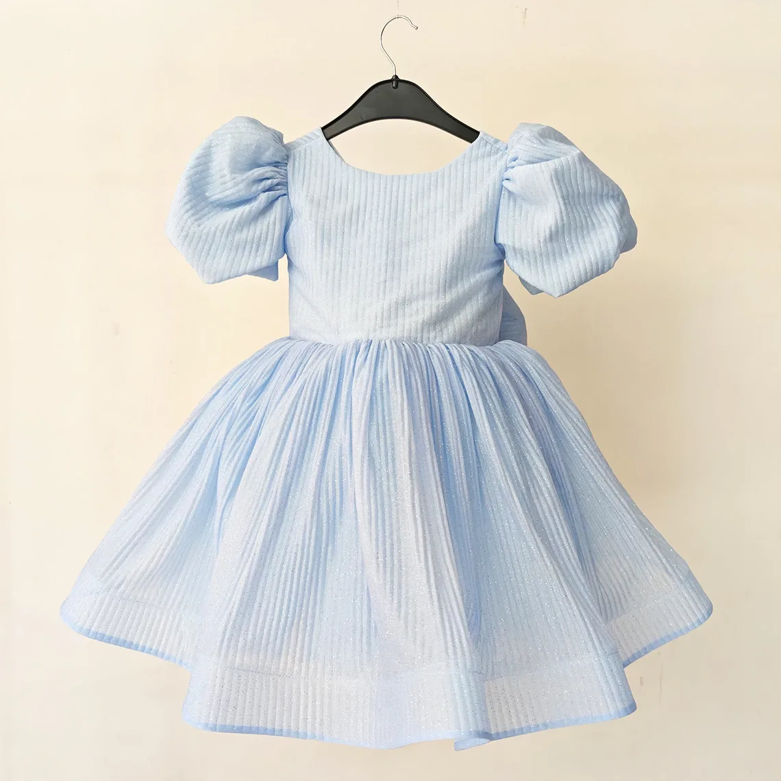 Kız Çocuk Bebe Mavisi Parıltılı Kısa Kol Kabarık Elbise