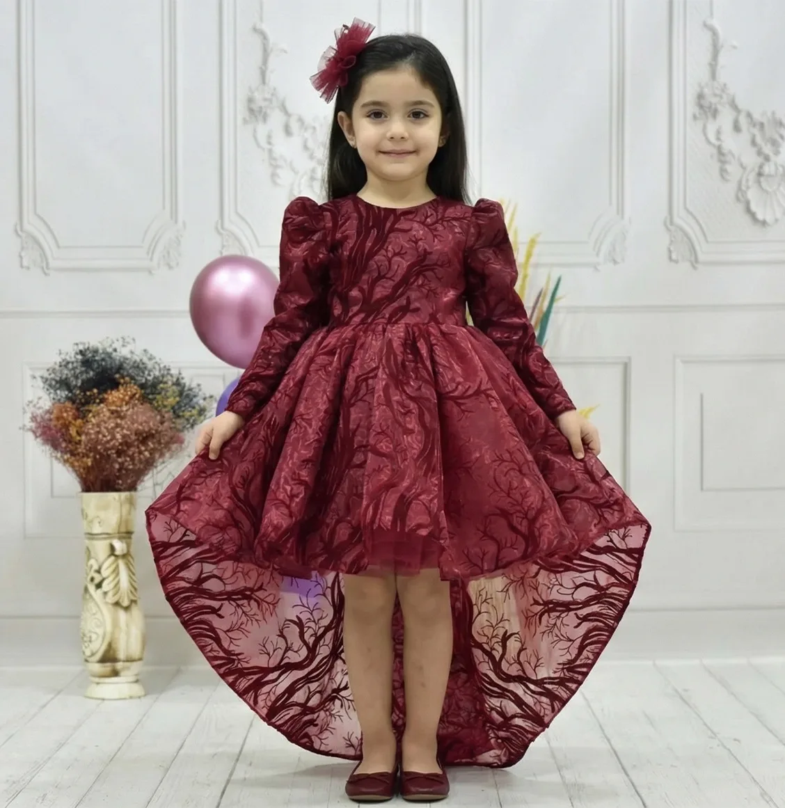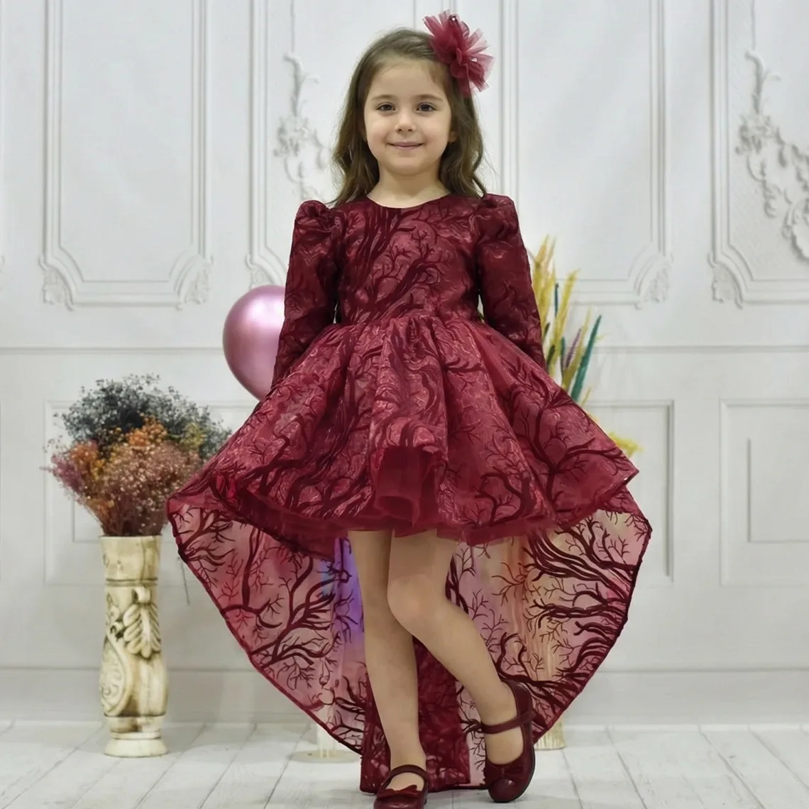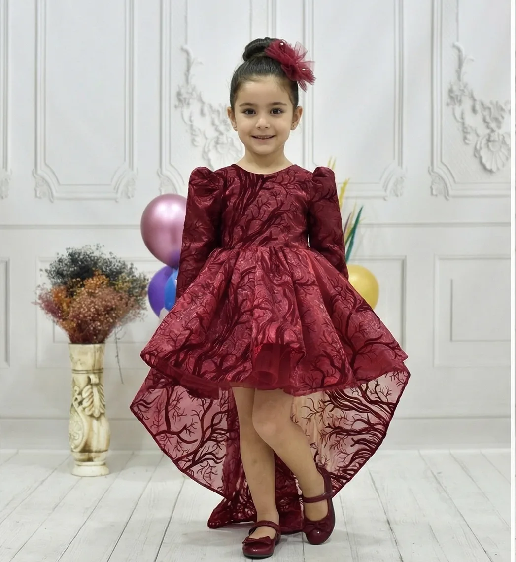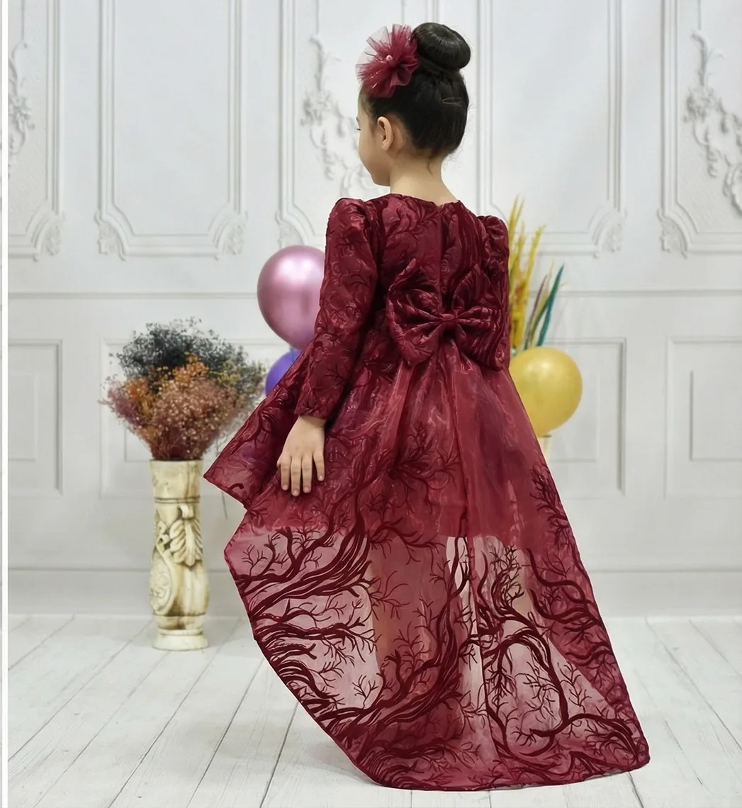 Kız Çocuk Bordo Simli Kuyruklu Kabarık Elbise Abiye