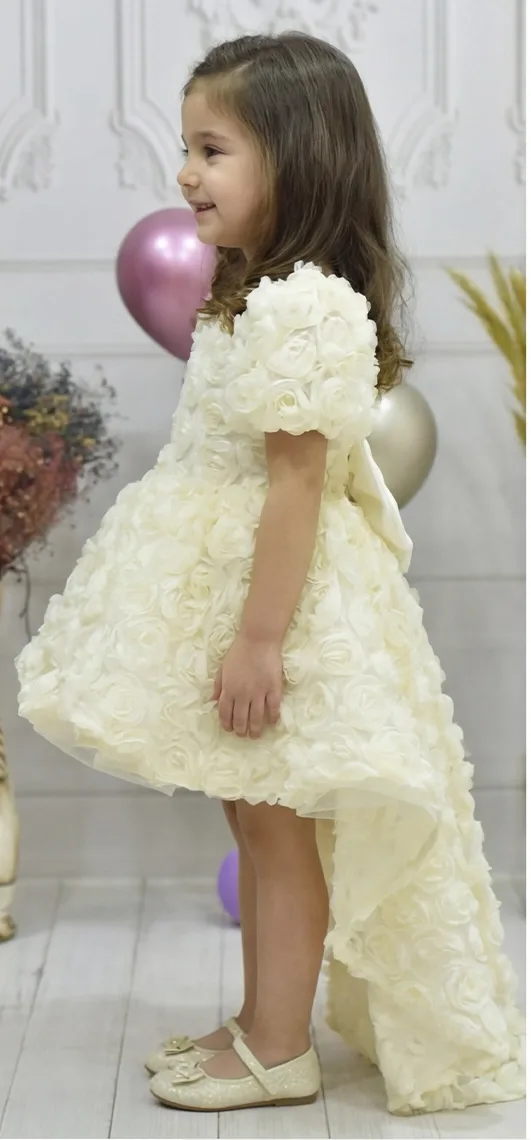 Kız Çocuk Krem Kuyruklu Şeffaf Gül Desenli Kısa Balon Kol Elbise Abiye Kuyruludur Ve Oldukça Zariftir İstediğin Beden Üretimi Yapılmaktadır. Elbısenın içi komple pamuk astarlıdır.Hicbir sekilde cildi tahriş etmez..Oldukça kabarık bir elbisedir. Yıkama ve kurutma işlemlerini tersten yapmanızı ve 30°c sıcaklıkta yıkamanızı öneririz. ( TOKASI DAHİL DEĞİLDİR )