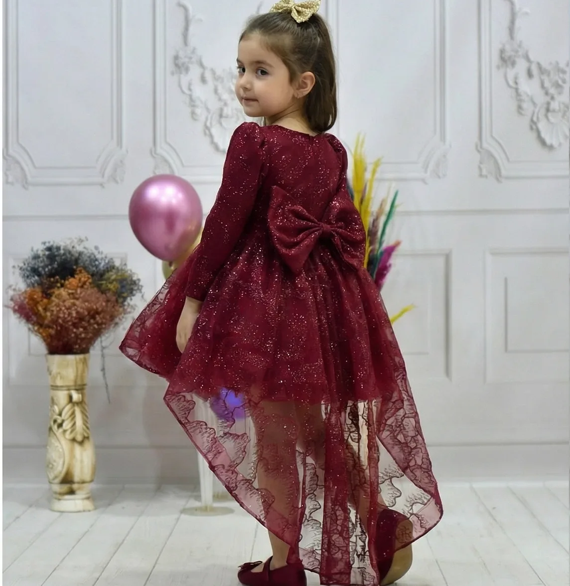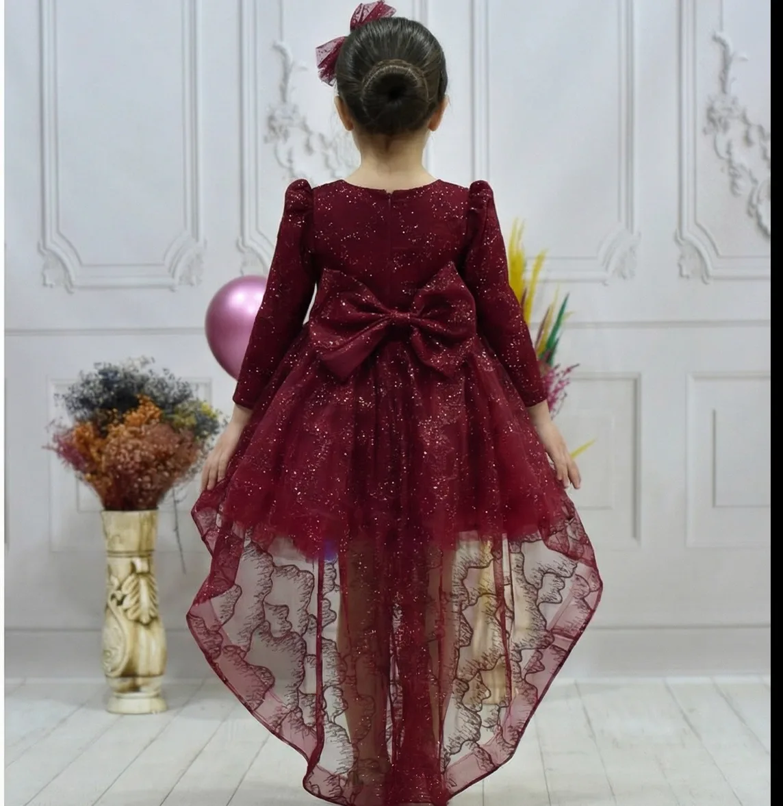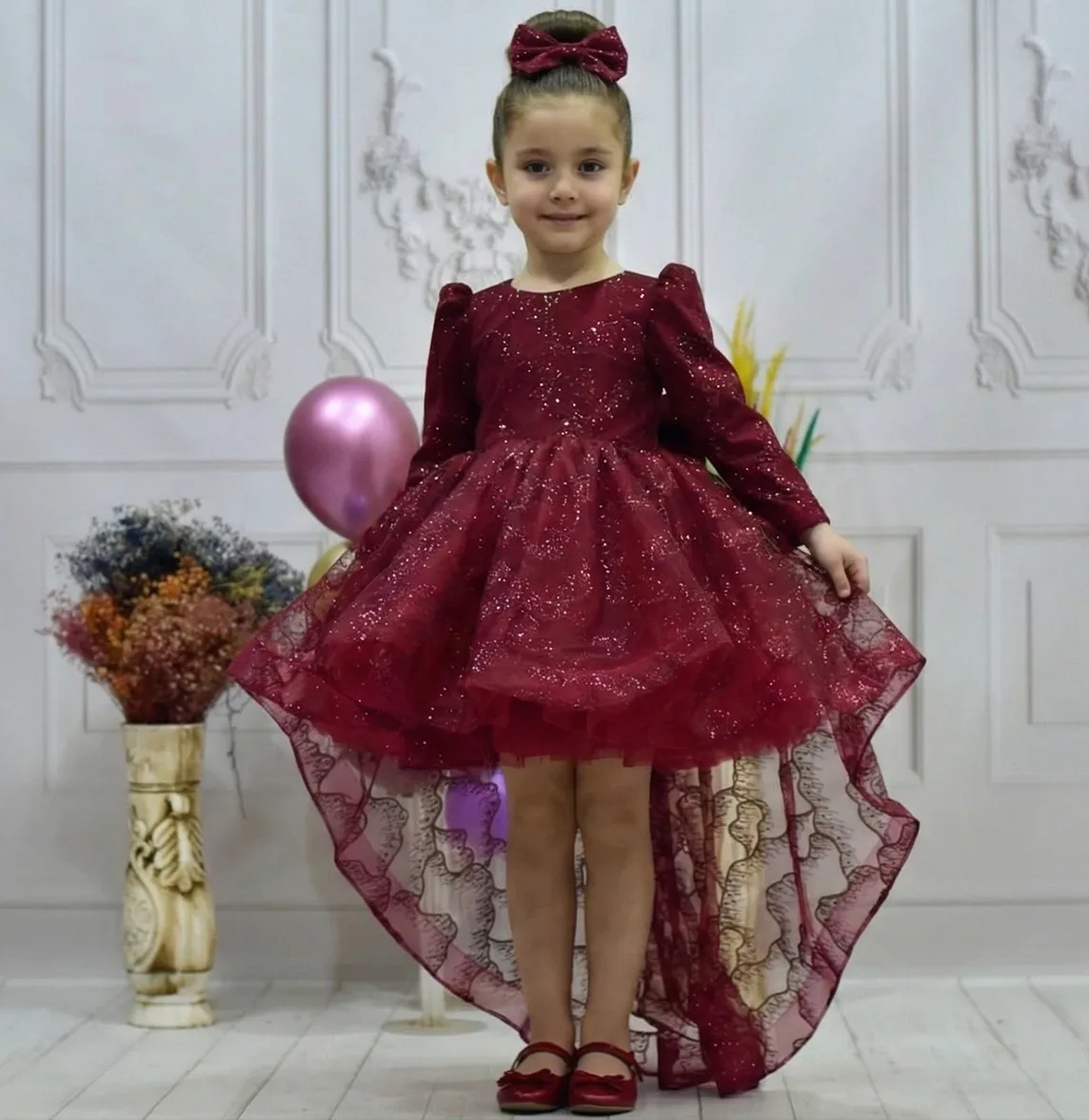 Kız Çocuk Kuyruklu Bordo Kabarık Elbise