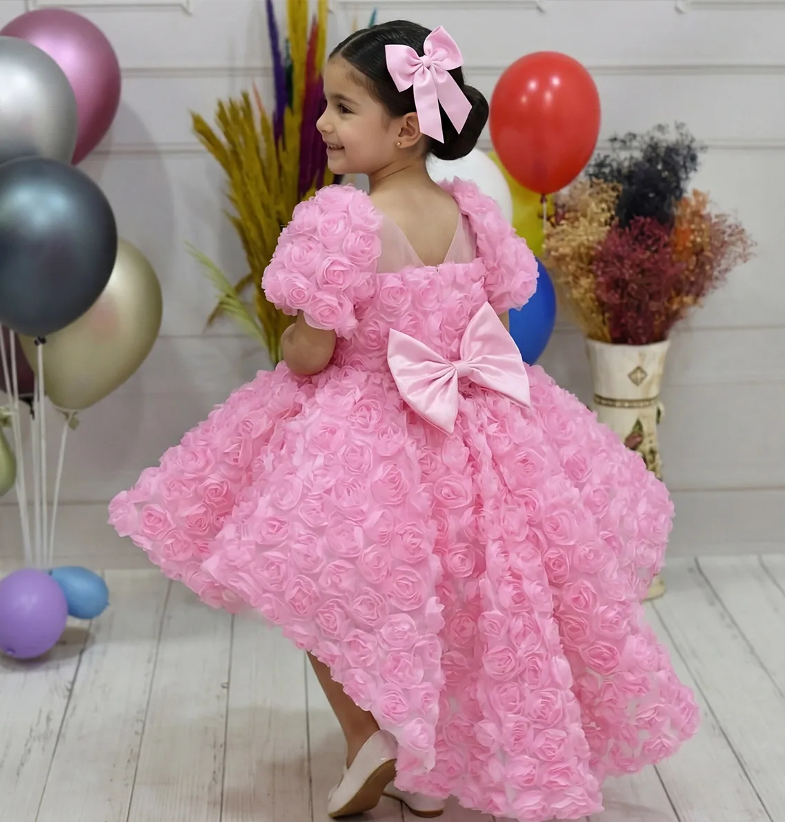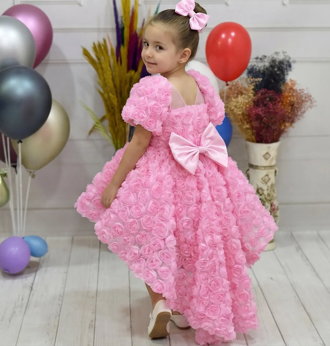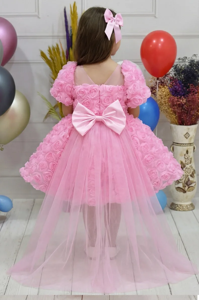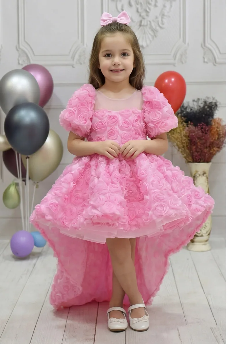 Kız Çocuk Pembe Gül Desenli Kuyruklu Kısa Kol Elbise Abiye Kuyruklu Elbise Abiye Abiyemiz Kuyruludur Ve Oldukça Zariftir İstediğin Beden Üretimi Yapılmaktadır. Elbısenın içi komple pamuk astarlıdır.Hicbir sekilde cildi tahriş etmez..Oldukça kabarık bir elbisedir. Yıkama ve kurutma işlemlerini tersten yapmanızı ve 30°c sıcaklıkta yıkamanızı öneririz. ( TOKA FİYATA DAHİL DEĞİLDİR )