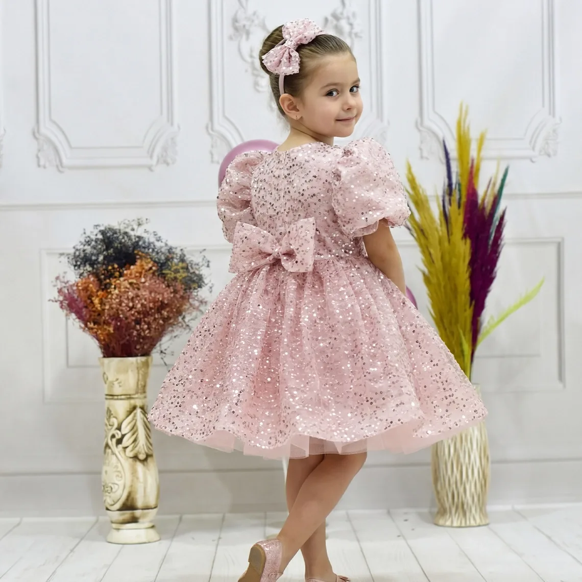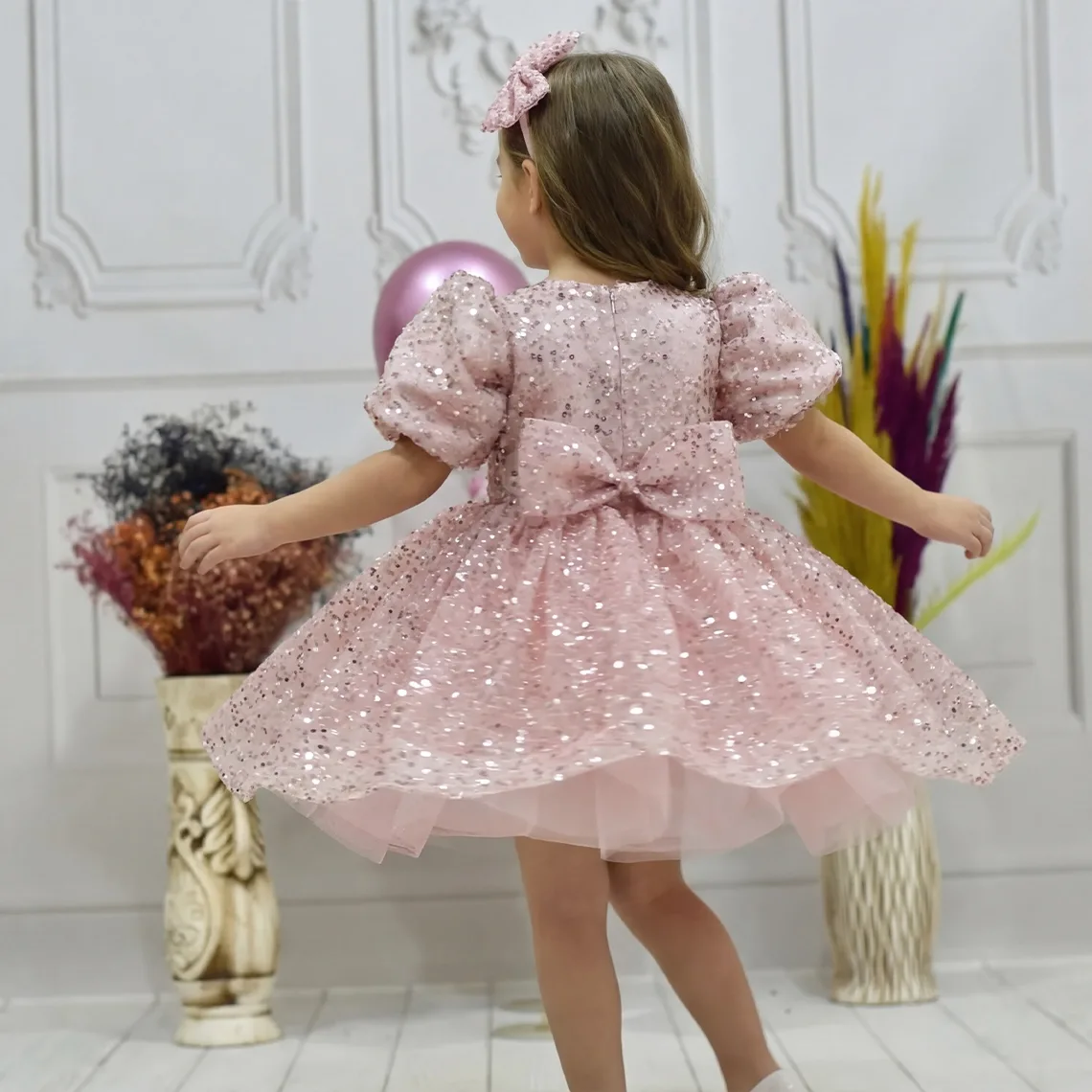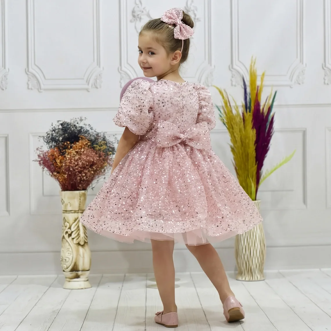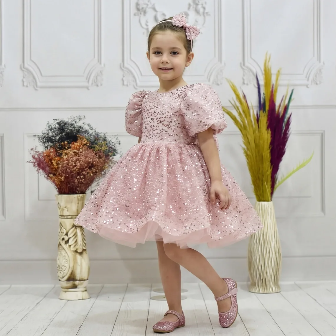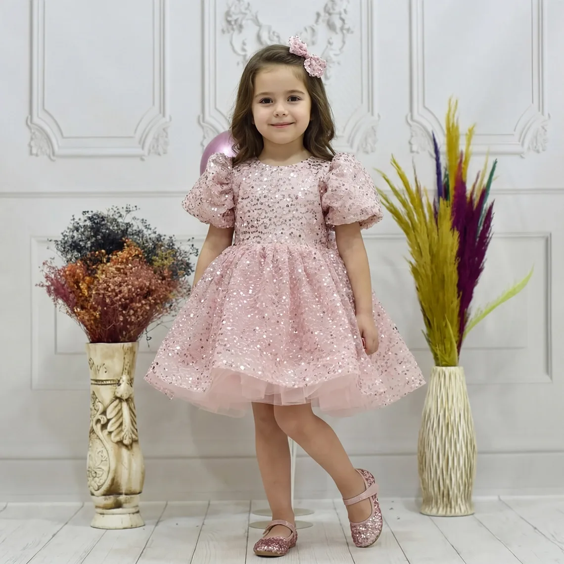 Kız Çocuk Boncukl Detaylı Kabarık Elbisel Tüy Detaylı Kabarık Elbise Eteklerinde Gren Vardır ve Çok Kabarık Elbise Modelidir.