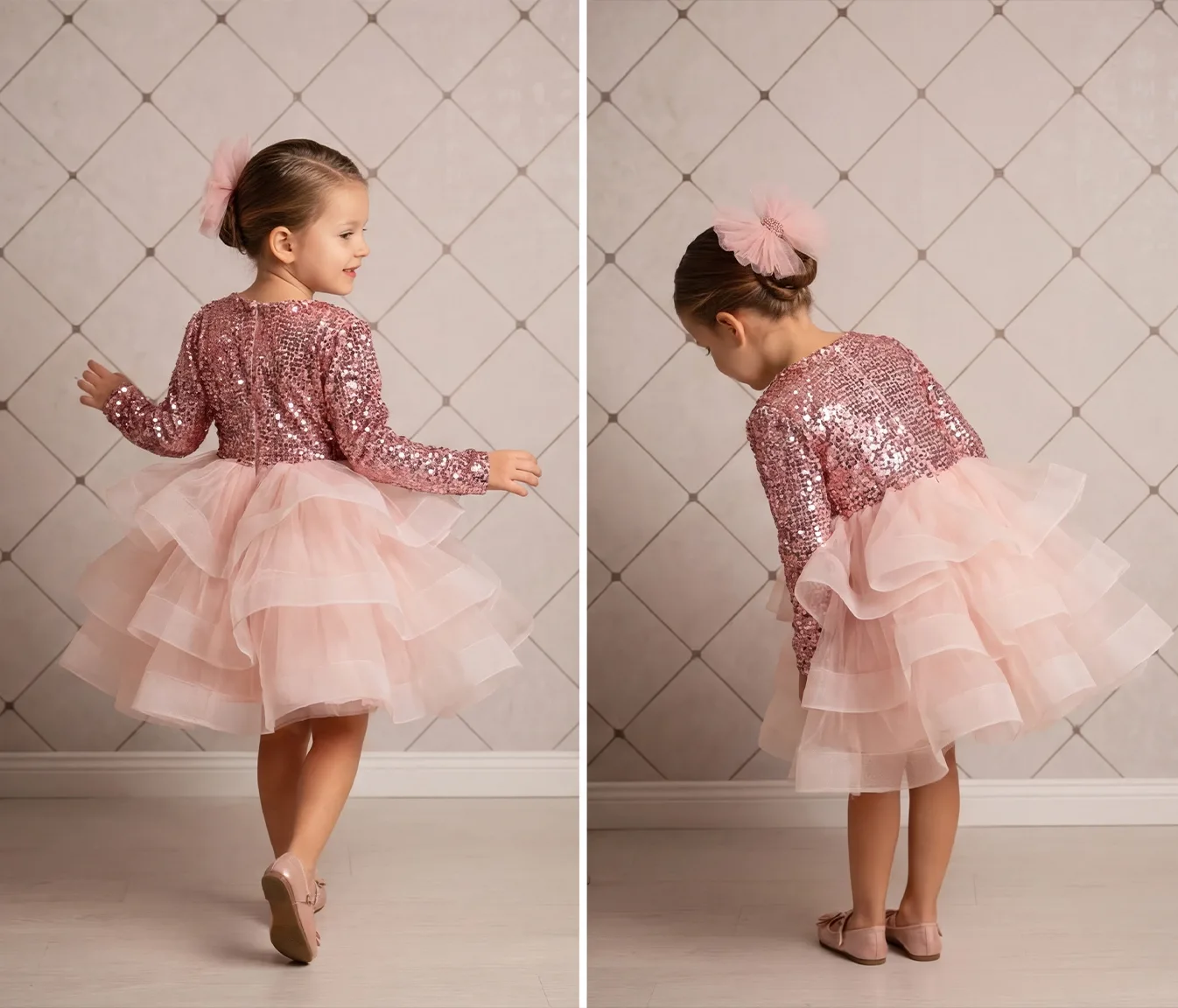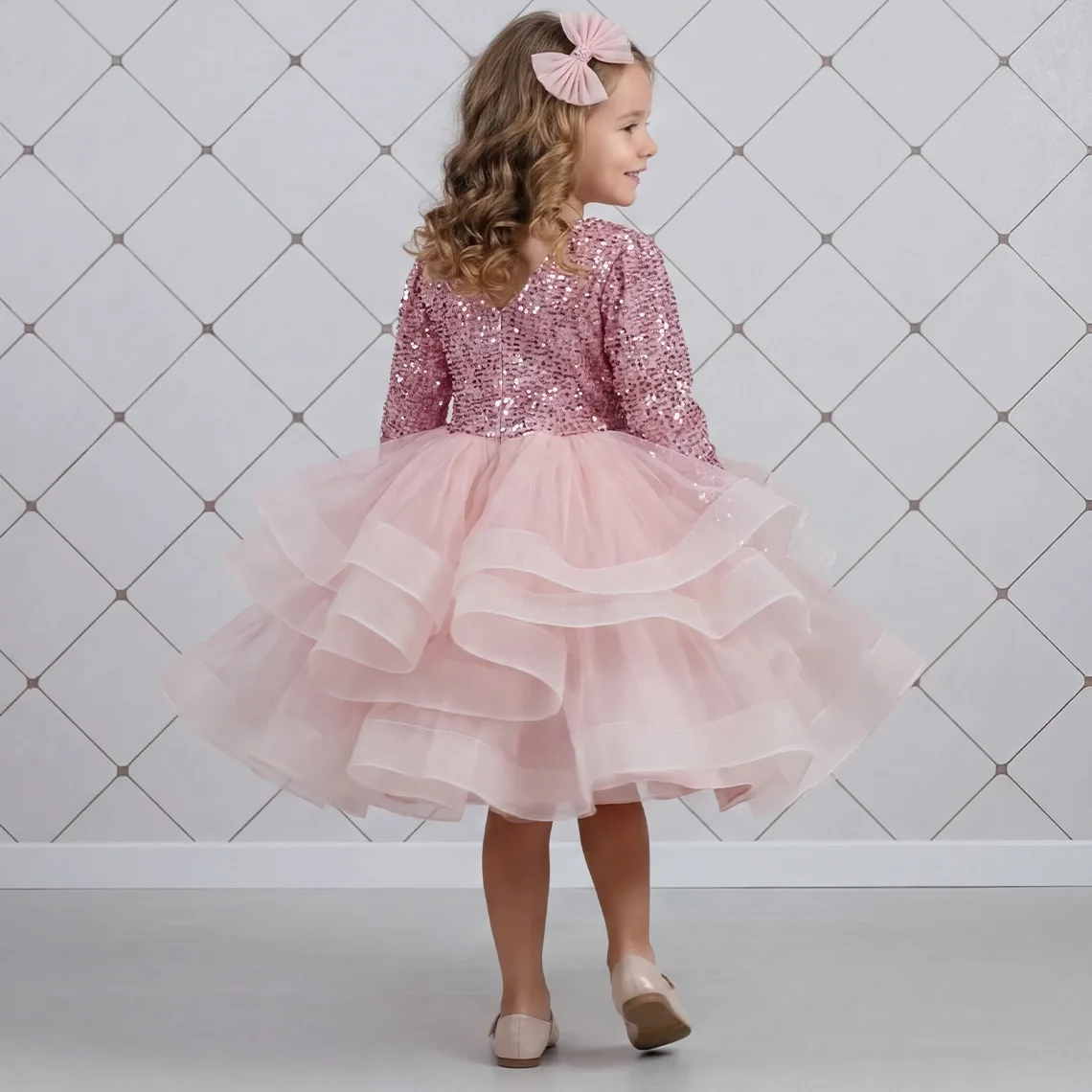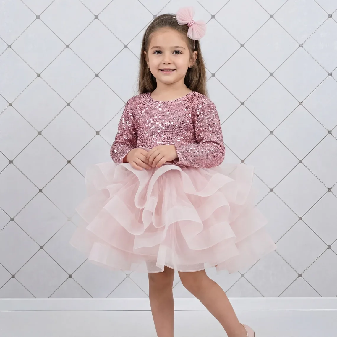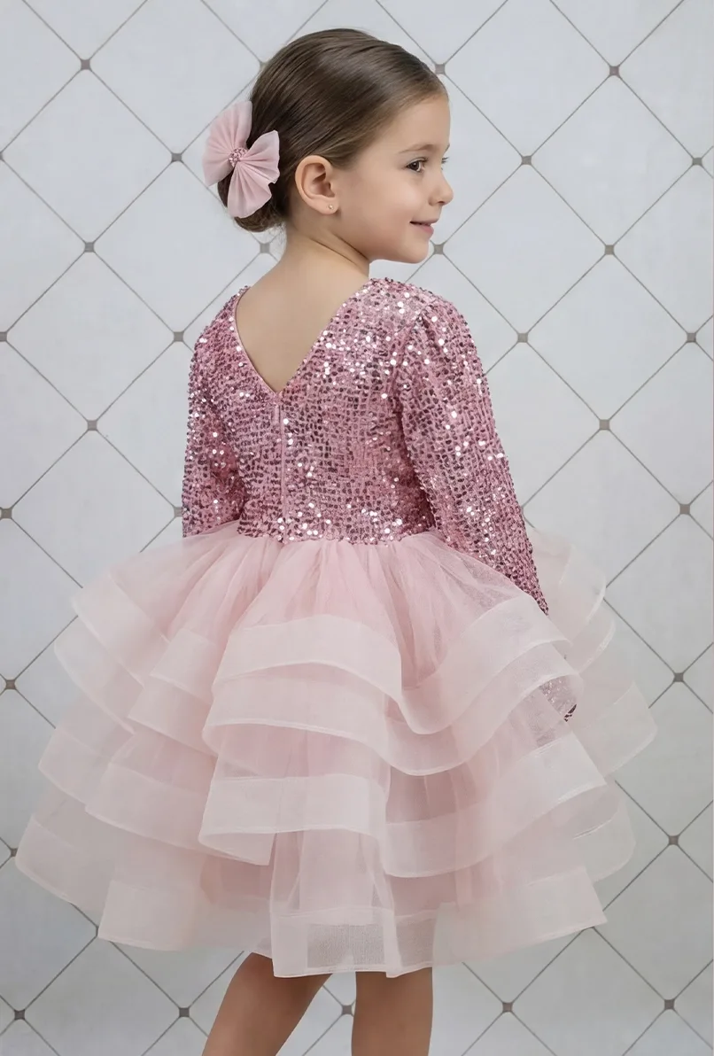 Kız Çocuk Payetli kadifeden yapılmıştır. Tamamen özel dikimdir. Tek parça elbisedir. 5 kat tül kullanılmıştır. Pamuk astarlıdır. Hiçbir şekilde cildi tahriş etmez. Aşırı kabarık bir elbisedir. Ön tarafında fiyonku vardır. Yıkama ve kurutma işlemlerini tersten yapmanızı ve 30°c sıcaklıkta yıkamanızı öneririz.