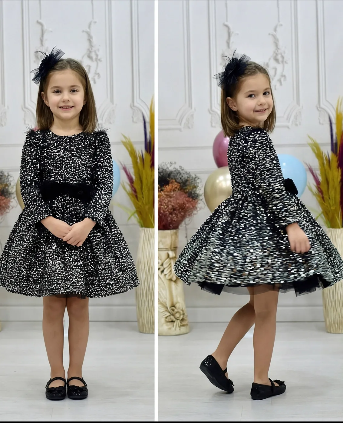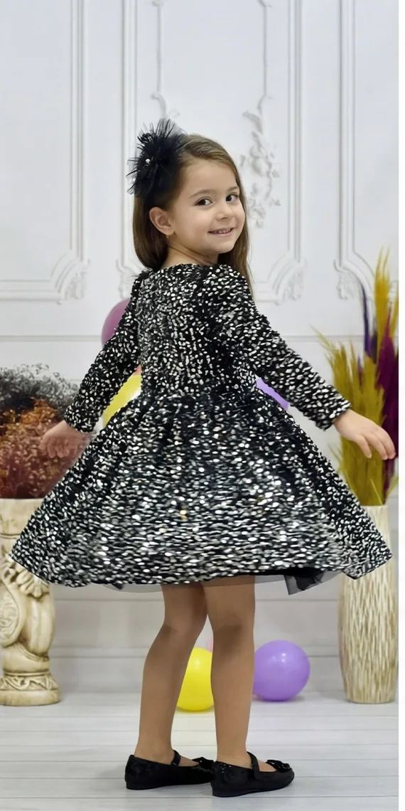 Kız Çocuk Siyah Beyaz Payetli Uzun Kol Omuz Tül Detaylı Elbise Kabarık Parıtlılı Elbise Modaya uygun bir şekilde ön dekolte detayı mevcuttur. Elbisenin içi komple pamuk astarlıdır. Hiçbir şekilde cildi tahriş etmez. Oldukça kabarık bir elbisedir.Düğün , Parti, Doğum günü elbisesidir. Ürünlerde kullanılan kumaş ve aksesuarlar kanserojen ve alerjen madde içermemektedir. Yumuşacık kumaşıyla bebeğinizin cildine dost üründür ve rahat hareket etmesini sağlar. Yıkama ve kurutma işlemlerini tersten yapmanızı ve 30°c sıcaklıkta yıkamanızı öneririz. ( TOKA FİYATA DAHİL DEĞİLDİR )