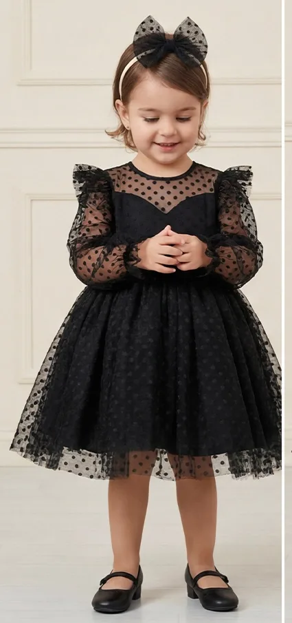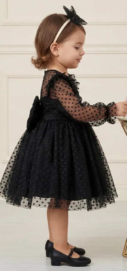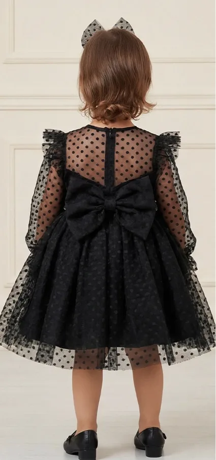 Kız Çocuk Siyah Puantiyeli Elbise Tamamen özel dikimdir. Eteğin kabarık olması için 6 kat tül kullanılmıştır. Üst kısmı saten kumaş olup . Elbisenin içi komple pamuk astarlıdır. Hiçbir şekilde cildi tahriş etmez. Tokası fiyata dahildir.Oldukça kabarık bir elbisedir. Yıkama ve kurutma işlemlerini tersten yapmanızı ve 30°c sıcaklıkta yıkamanızı öneririz.
