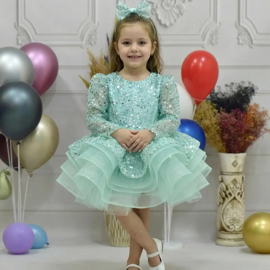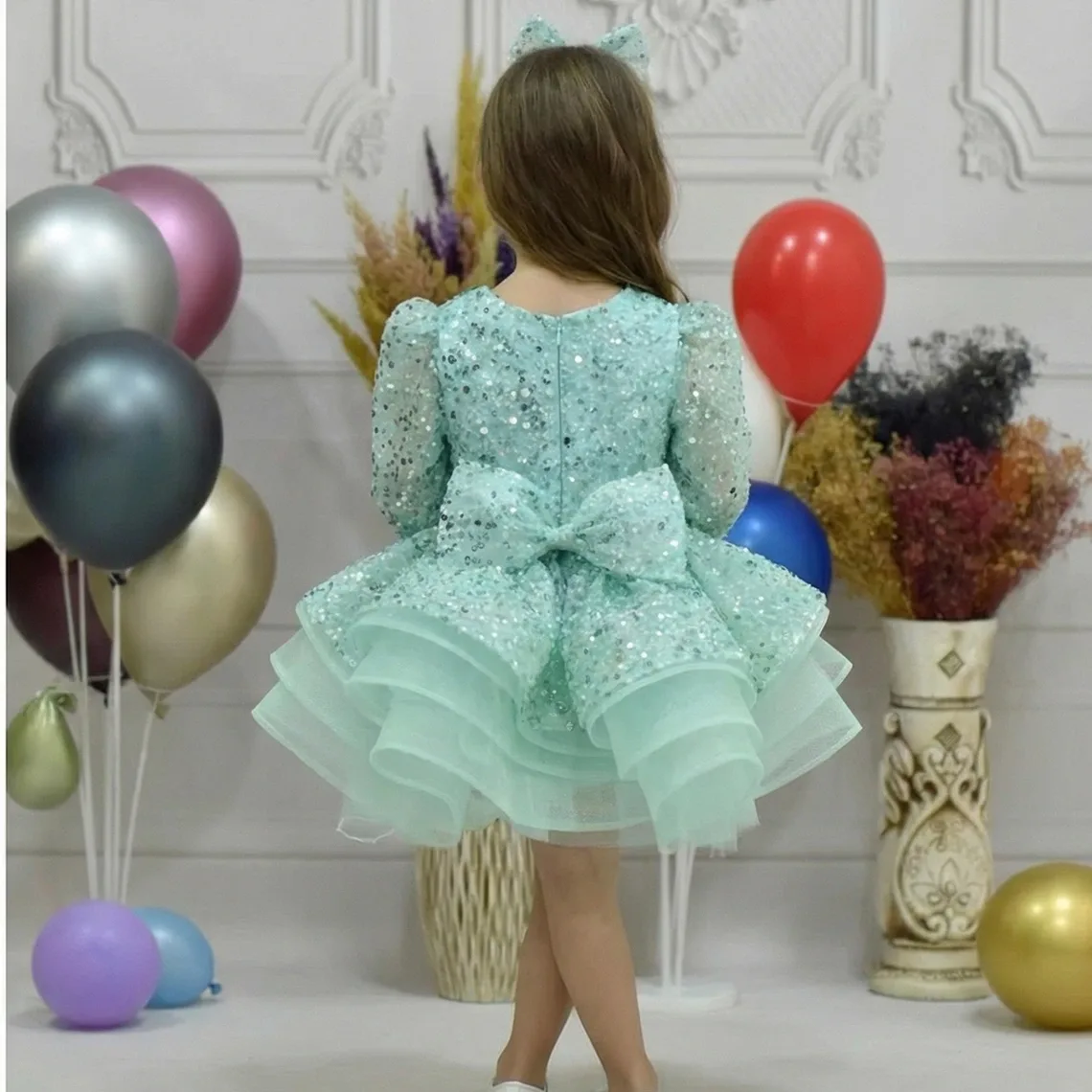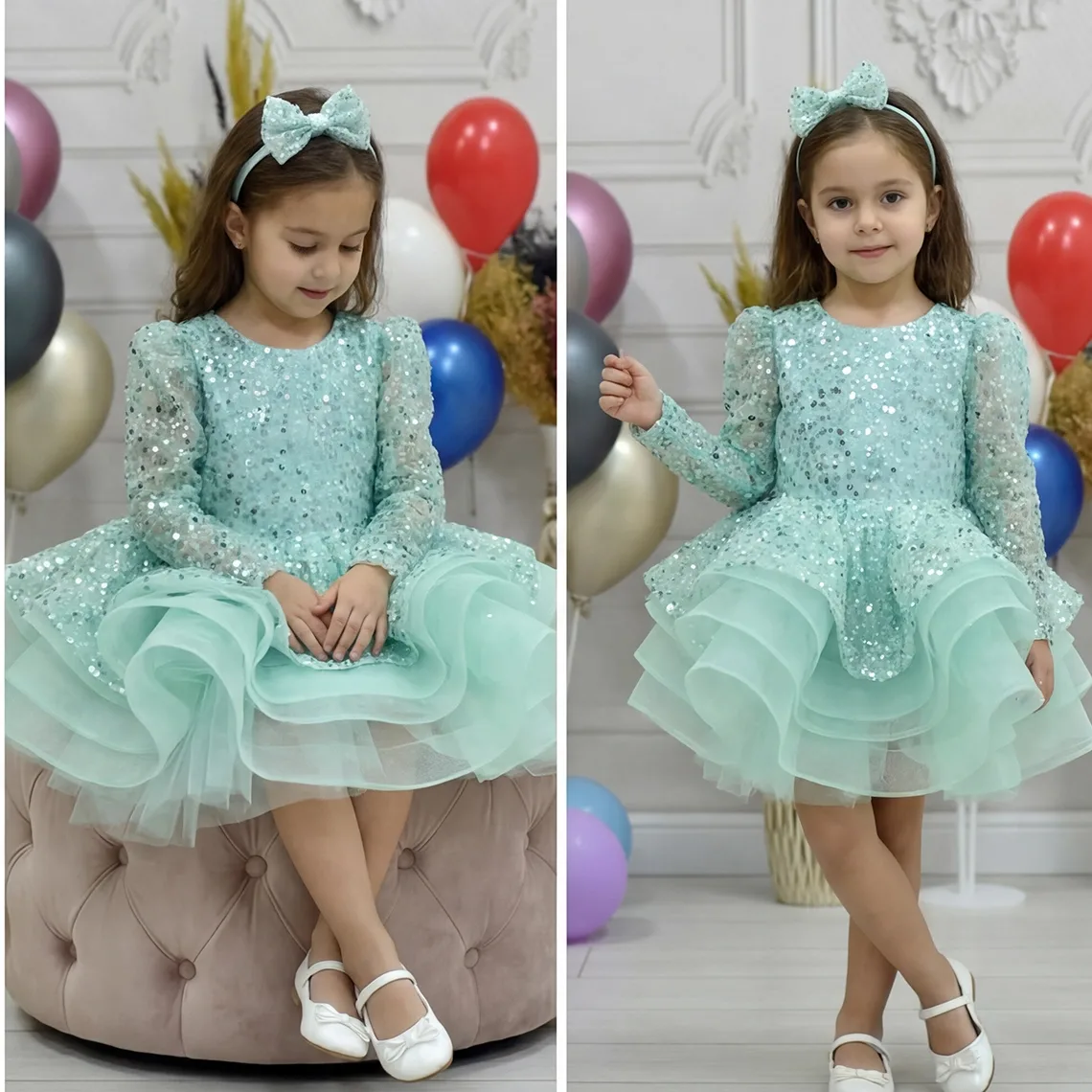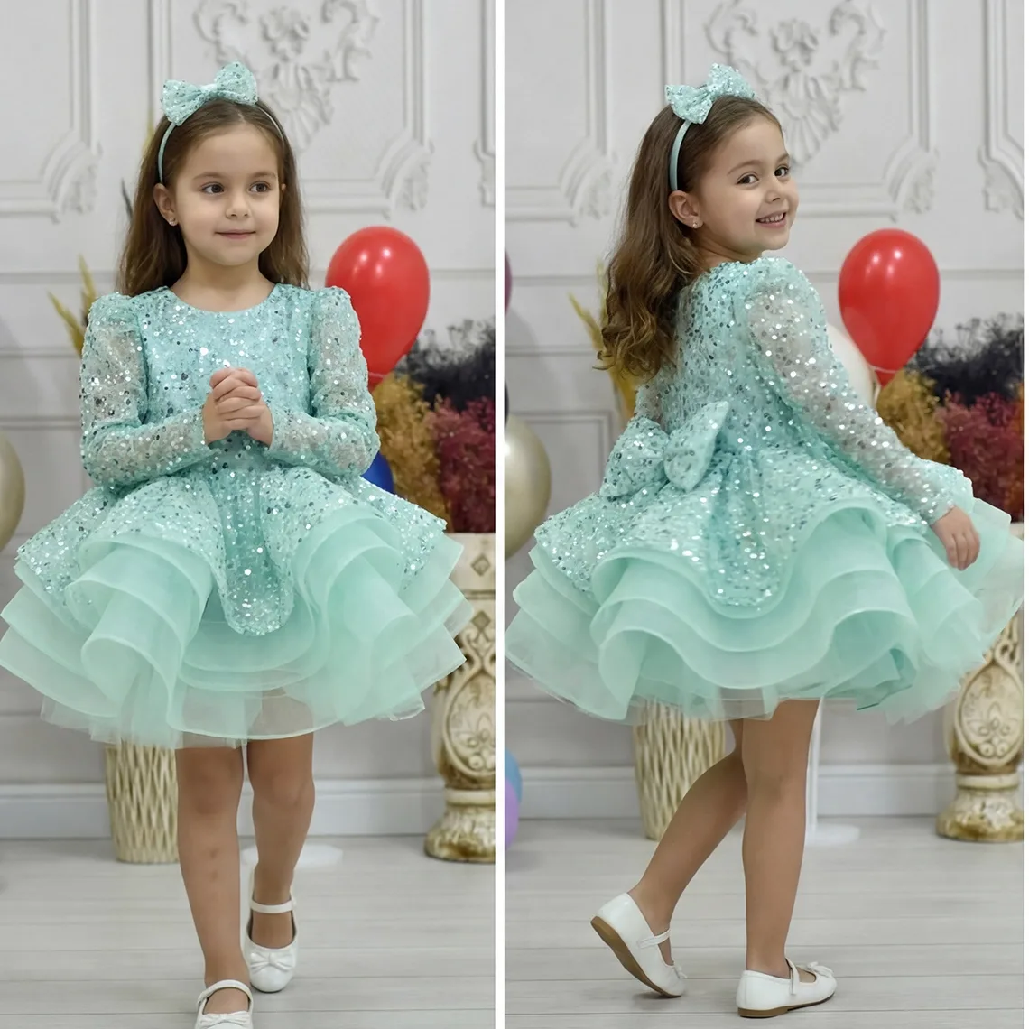 Kız Çocuk Lila Boncuklu Payetli Kısa Kol Kabarık Elbise Tüy Detaylı Kabarık Elbise Eteklerinde Gren Vardır ve Çok Kabarık Elbise Modelidir.
