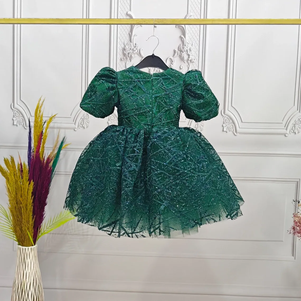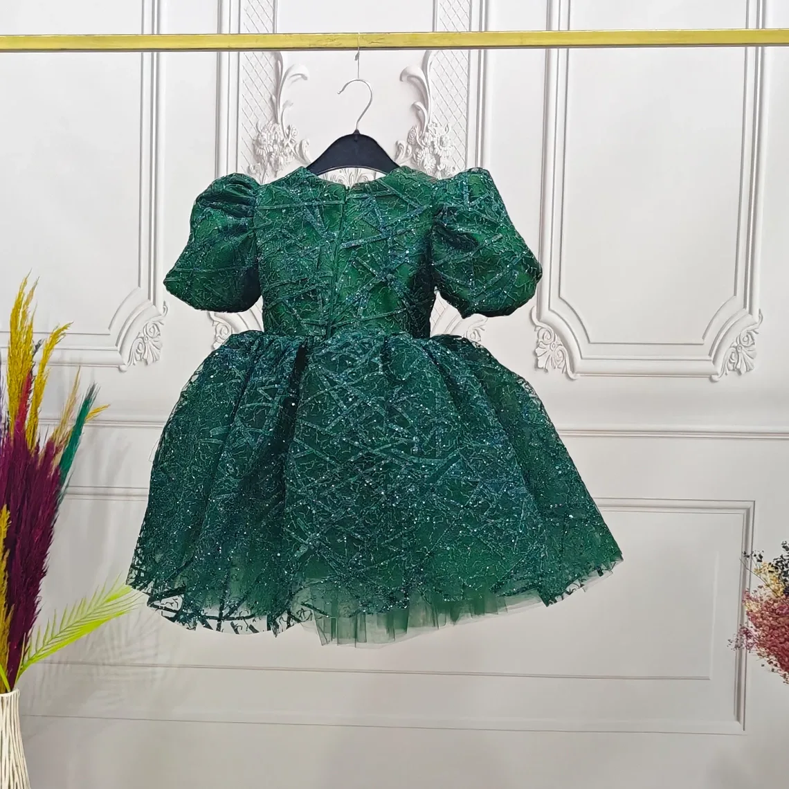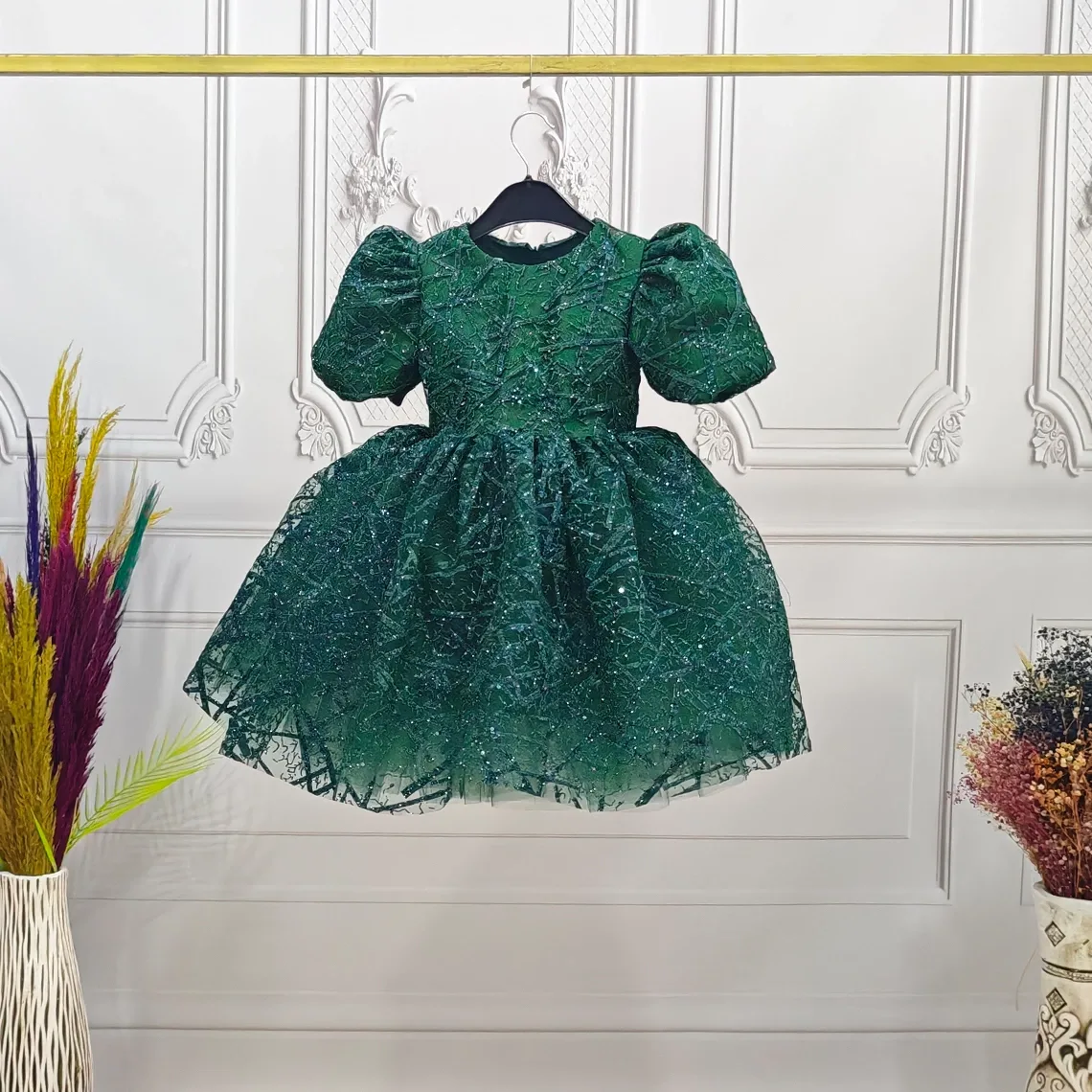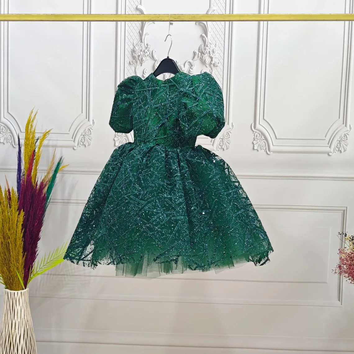 Kız çocuklar için özel olarak tasarlanan Elussi marka Zümrüt Yeşili Gül Desenli Kuyruklu Uzun Kol Elbise Abiye, şıklık ve zarafeti bir arada sunuyor.
