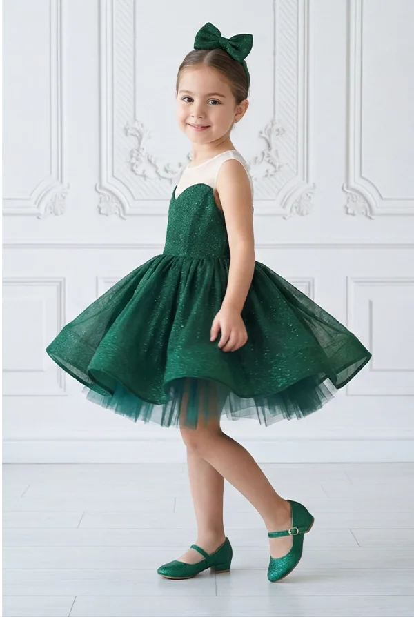 Kız Çocuk Zümrüt Yeşili Parıltılı Tamamen özel dikimdir. Eteğin kabarık olması için kat kat tül kullanılmıştır. Üst kısmı Saten ile yapılmıştır. Elbise içi komple pamuk astarlıdır. Hiçbir şekilde cildi tahriş etmez. Oldukça kabarık bir elbisedir. Yıkama ve kurutma işlemlerini tersten yapmanızı ve 30°c sıcaklıkta yıkamanızı öneririz.