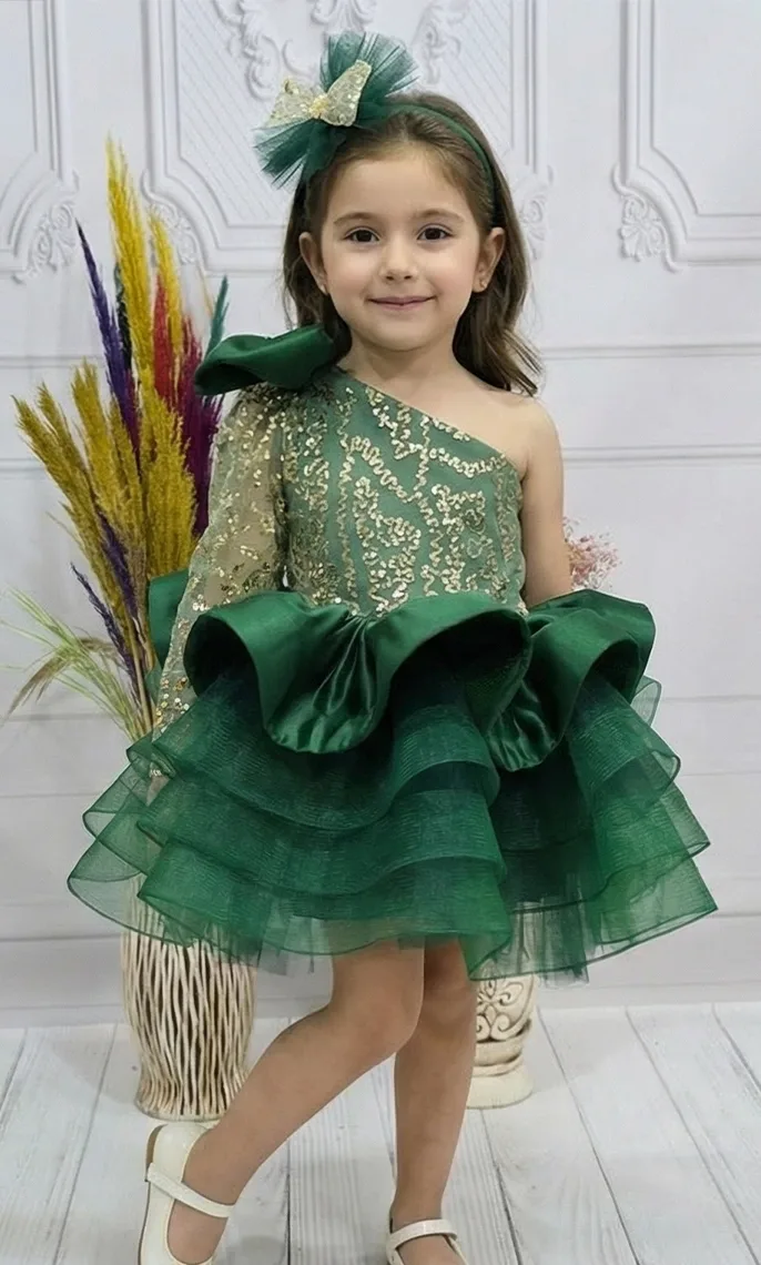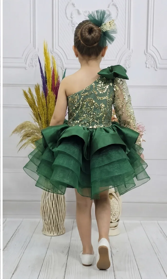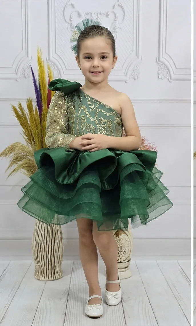 Kız Çocuk Zümrüt Yeşili Pullu Tek Omuz Parıltılı Elbise 6 kat tül ve 1 kat parılılı tül eklenmiş olup toplam 7 kat kullanılmıştır. .Elbısenın içi komple pamuk astarlıdır.Hicbir sekilde cildi tahriş etmez.Tokası fiyata dahildir.Oldukça kabarık bir elbisedir. Yıkama ve kurutma işlemlerini tersten yapmanızı ve 30°c sıcaklıkta yıkamanızı öneririz.