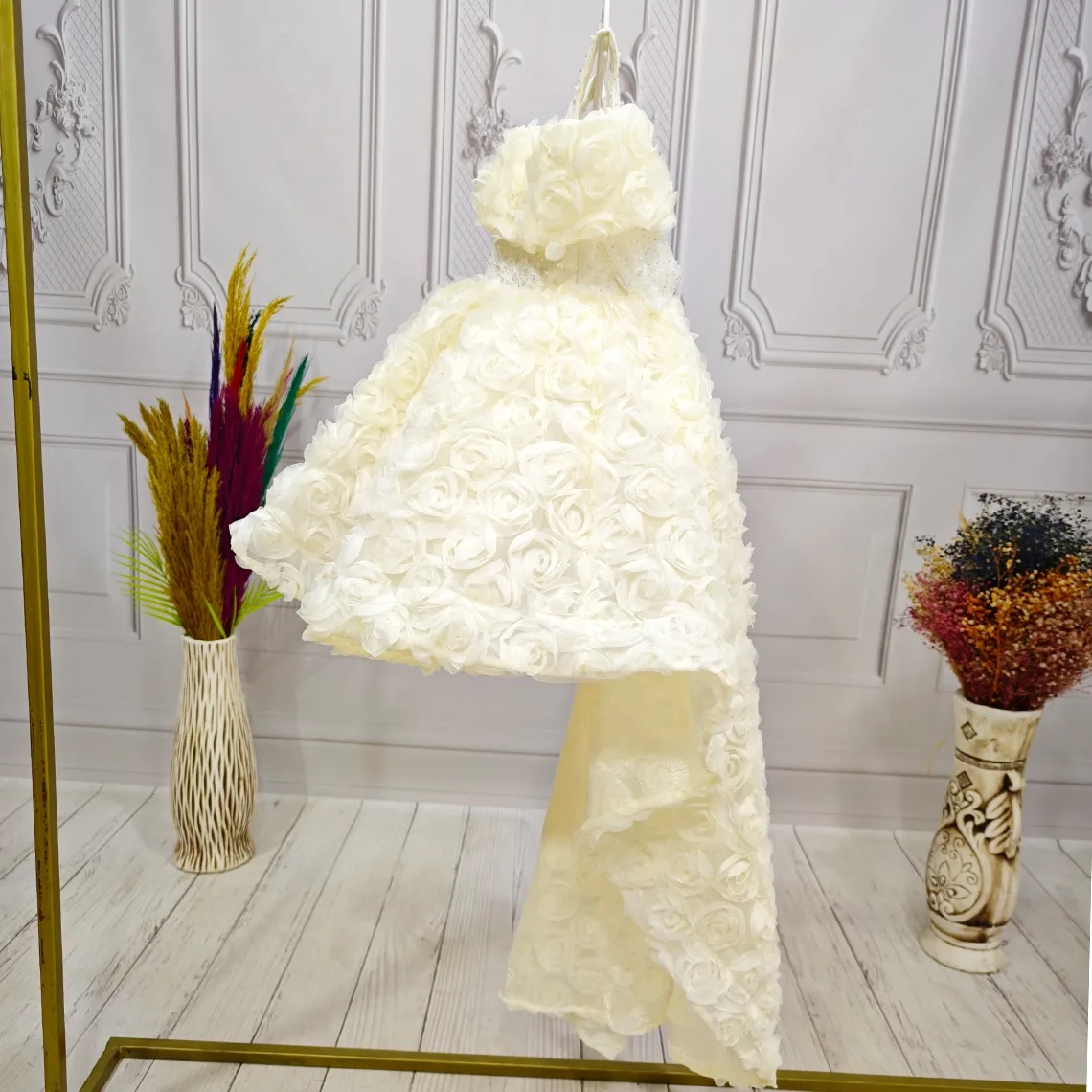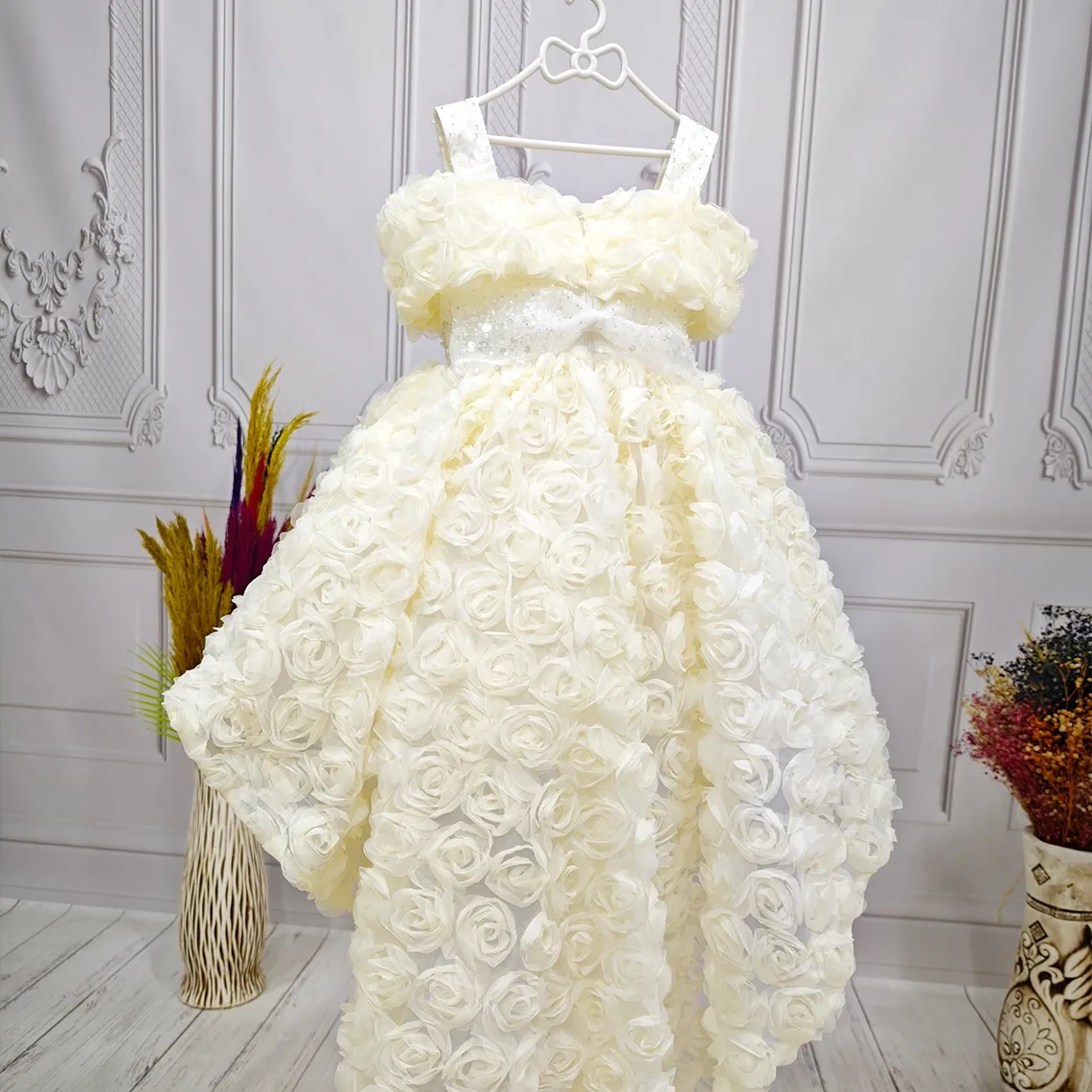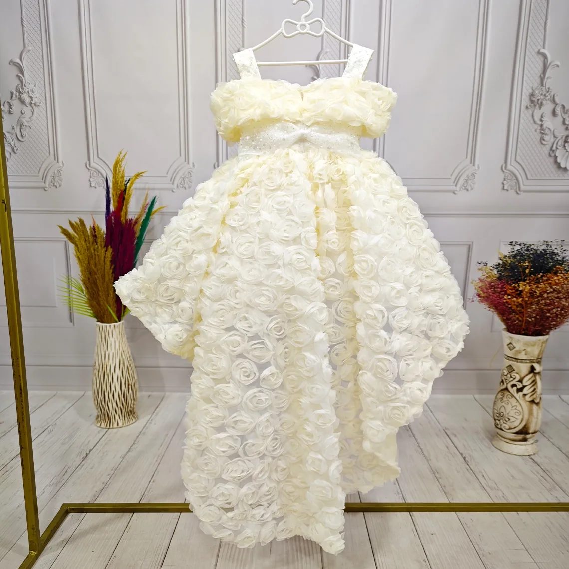 Kız Çocuk Krem Kuyruklu Şeffaf Gül Desenli Kısa Balon Kol Elbise Abiye Kuyruludur Ve Oldukça Zariftir İstediğin Beden Üretimi Yapılmaktadır. Elbısenın içi komple pamuk astarlıdır.Hicbir sekilde cildi tahriş etmez..Oldukça kabarık bir elbisedir. Yıkama ve kurutma işlemlerini tersten yapmanızı ve 30°c sıcaklıkta yıkamanızı öneririz. ( TOKASI DAHİL DEĞİLDİR )