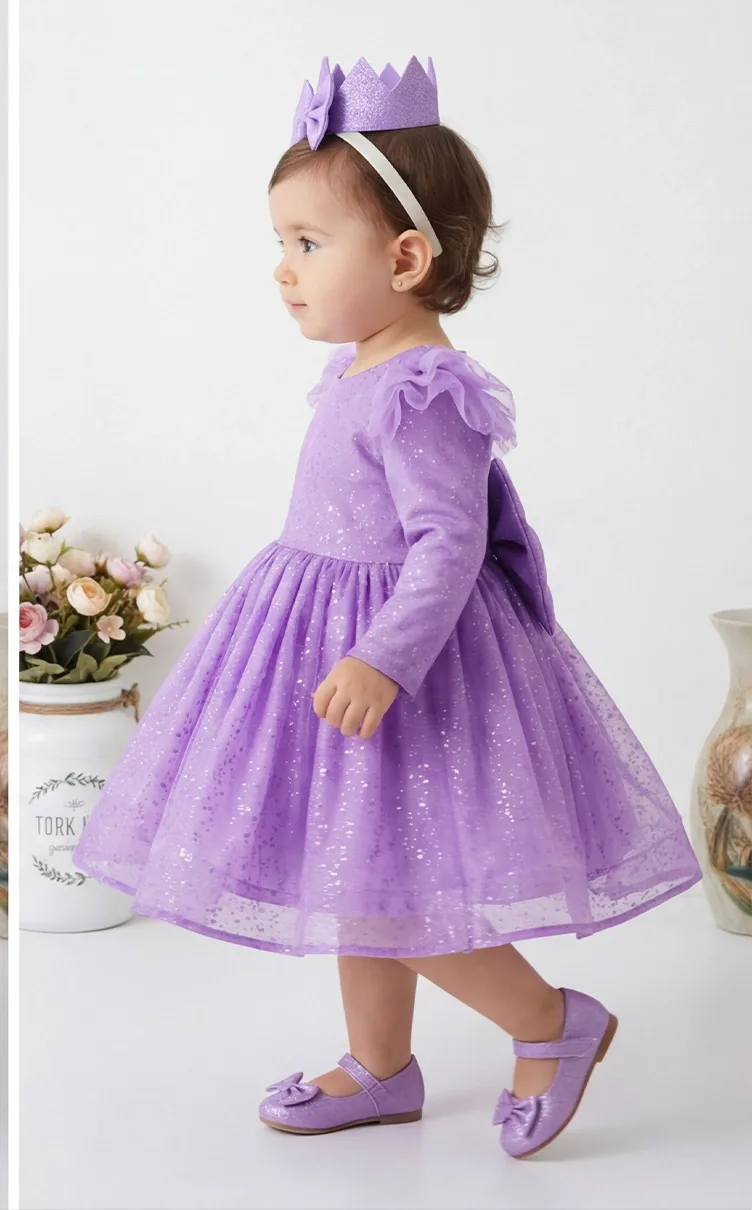 Kız Çocuk Lila Kısa Balon Kol  Kabarık Elbise  Kabarık Parıtlılı Elbise  Modaya uygun bir şekilde ön dekolte detayı mevcuttur. Elbisenin içi komple pamuk astarlıdır. Hiçbir şekilde cildi tahriş etmez. Oldukça kabarık bir elbisedir.Düğün , Parti, Doğum günü elbisesidir. Ürünlerde kullanılan kumaş ve aksesuarlar kanserojen ve alerjen madde içermemektedir. Yumuşacık kumaşıyla bebeğinizin cildine dost üründür ve rahat hareket etmesini sağlar. Yıkama ve kurutma işlemlerini tersten yapmanızı ve 30°c sıcaklıkta yıkamanızı öneririz. ( TOKA FİYATA DAHİL DEĞİLDİR )