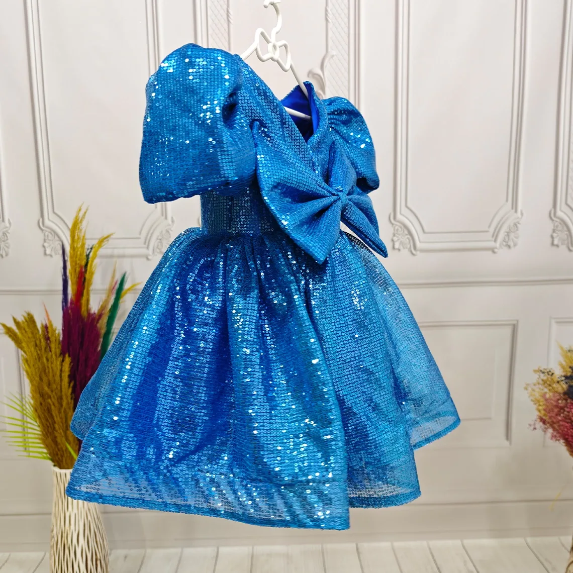 Saks Mavisi Payetli Kabarık Abiye Elbise Gelinlik