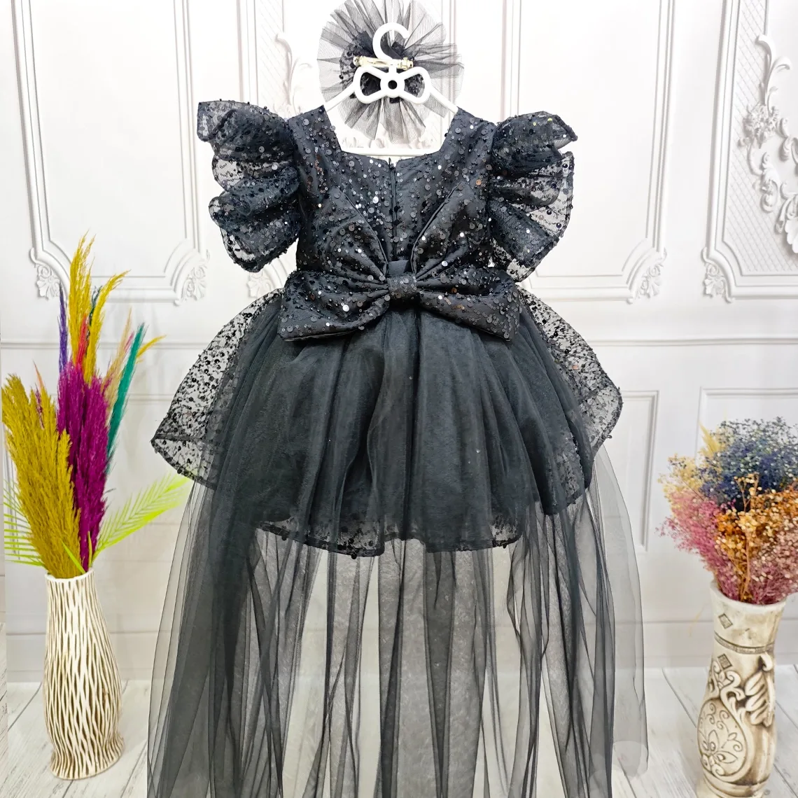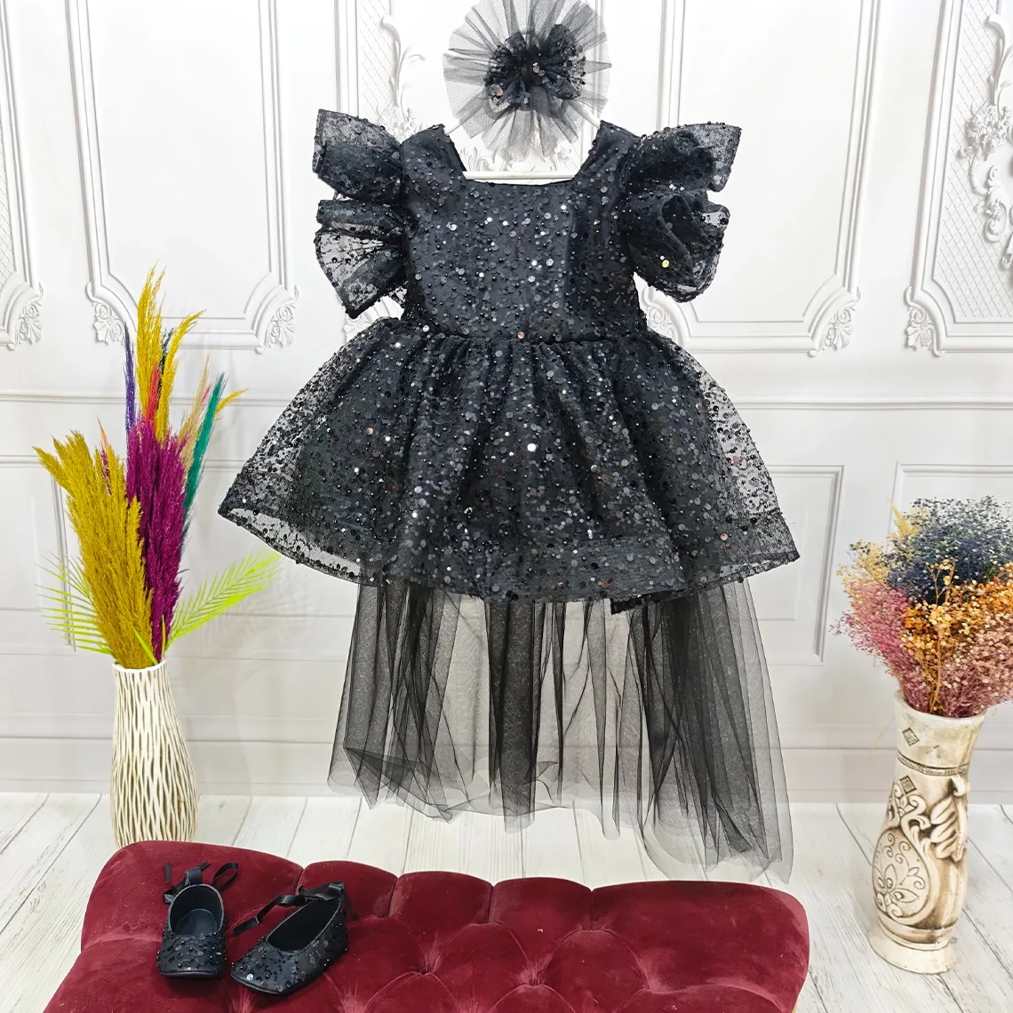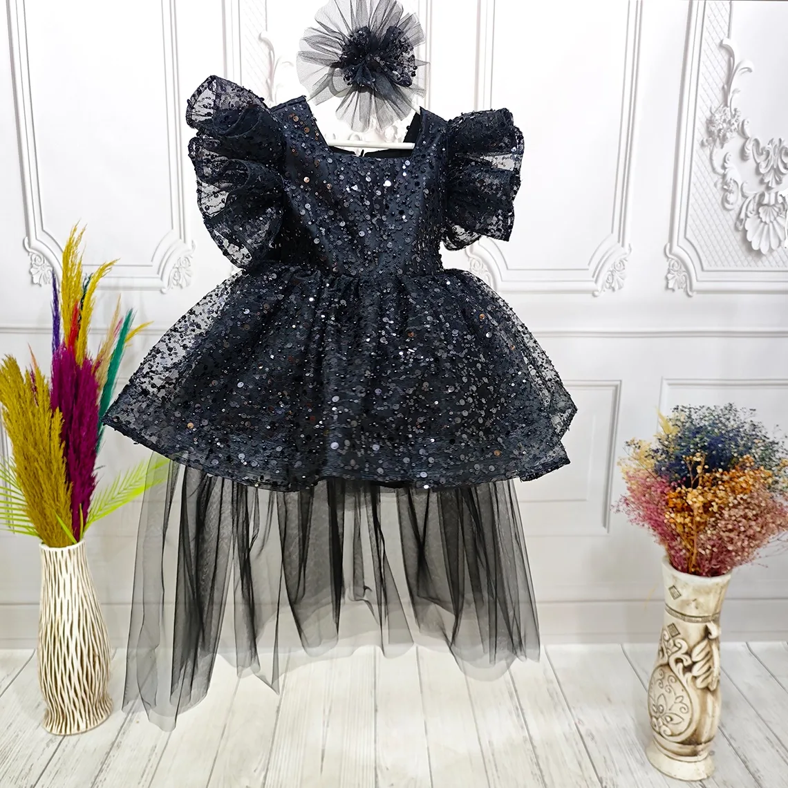 Kız Çocuk Boncuklu Payetli Kabarık Elbisel Tüy Detaylı Kabarık Elbise Eteklerinde Gren Vardır ve Çok Kabarık Elbise Modelidir.